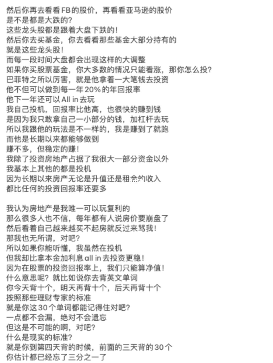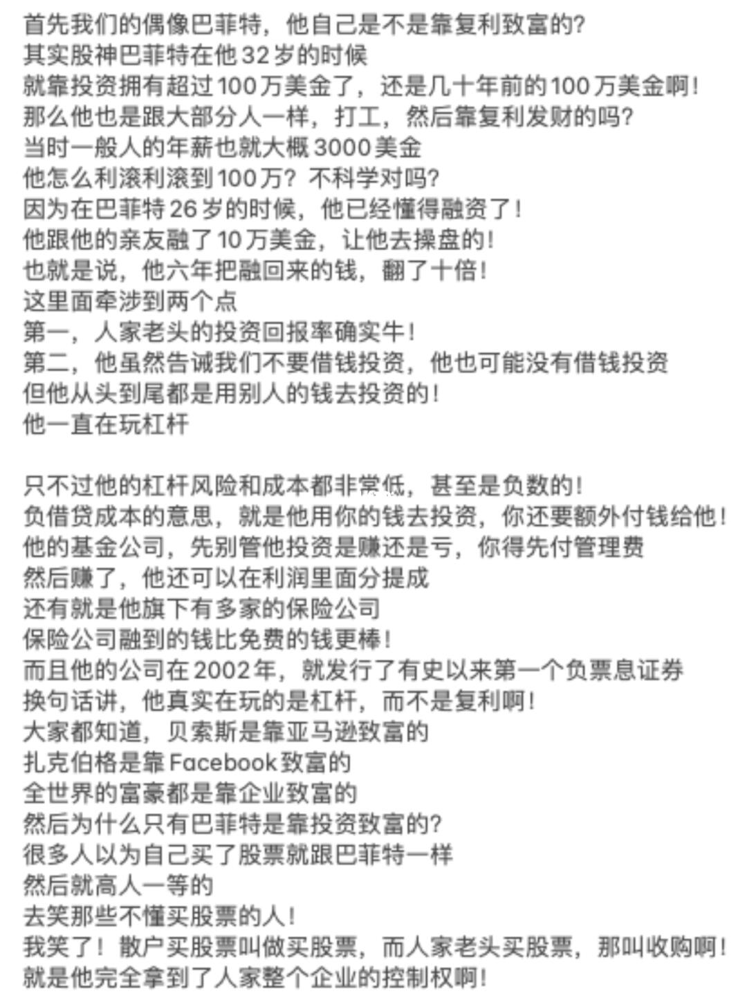 第二,他虽然告诫我们不要借钱投资,他也可能没有借钱投资