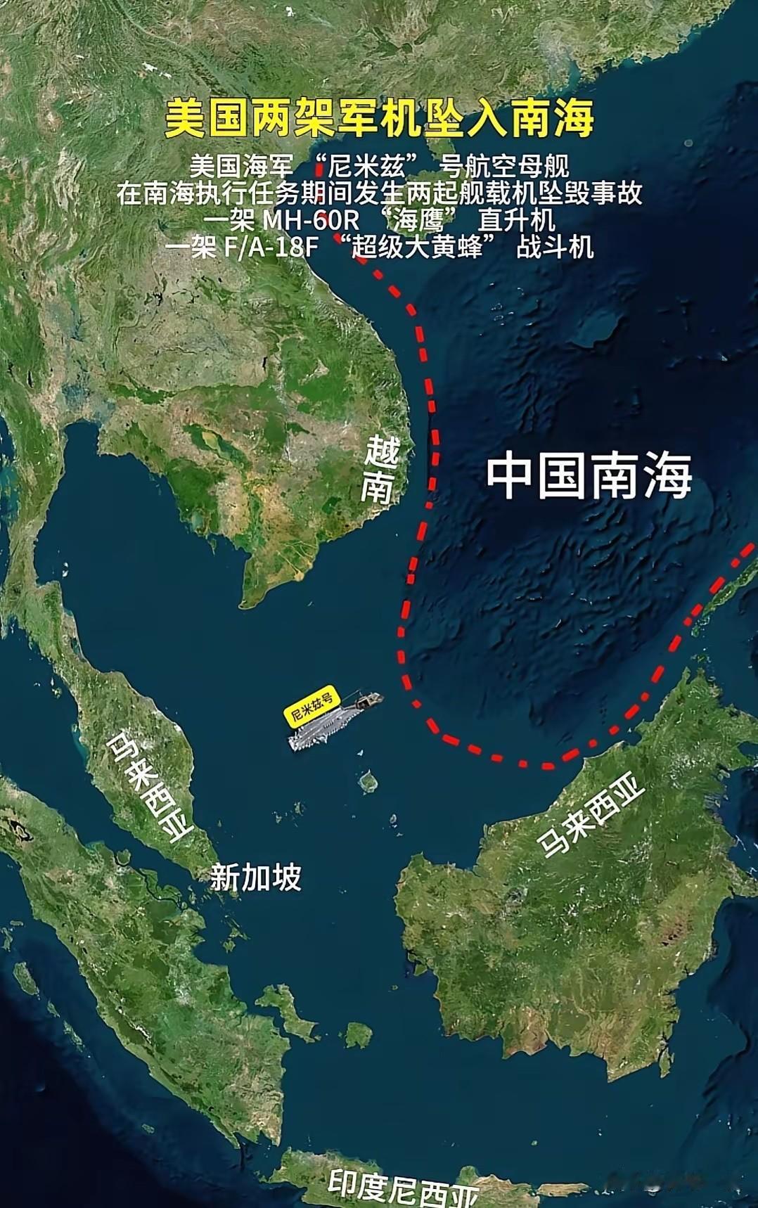 美国军方应该明白什么是红线了吧? 秀肌肉意外变成了“跳水秀”, 这跟头摔得着实没面子。 半小时内,一架“海鹰”直升机刚坠海, 一架“超级大黄蜂”又跟着扎进南海。 这“巧合”连美军自己都圆不回来。 美军说这是“意外”,可网友看得明白: 一架是50%的偶然, 两架就是100%的必然。 更巧的是,出事的“尼米兹”号 正办“退休前最后巡演”。 已经服役整整50年, 航程绕地球150圈, 打遍海湾战争、阿富汗战场的"传奇航母", 竟在退役前的南海"谢幕演出"上栽了大跟头。 最妙的是咱们南部战区的态度。 没说狠话,但谁都懂弦外之音。 要是摔得多了忙不过来,尽管开口, 人道主义救援咱义不容辞,分文不取。 最后想问一句: 这要是再摔, 咱的打捞船队要不要提前备着?