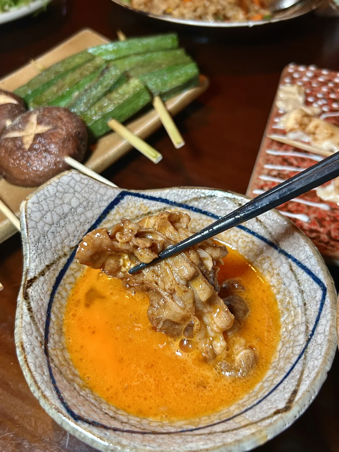 后悔这么晚才发现的宝藏小店!! 日漫画风真的好绝!好拍好温馨💯 盲点不踩雷~~ 以下是关于日料店里这些菜品的口感描述: 🍣三文鱼炒饭 米饭粒粒分明 口感丰富 三文鱼肉质鲜嫩 每一口都能感受到不同的滋味 🍲寿喜锅 味道鲜甜 涮牛肉真的绝😋 牛肉鲜嫩多汁 口感柔软 搭配无菌蛋好吃晕了!!配料也很丰富 ✔️鳗鱼厚蛋烧 口感嫩滑细腻 又有鳗鱼的鲜美 根本停不下来🤤太满足了!! ✔️明太子鸡翅 外皮烤得酥脆可口 内部鸡肉多汁嫩滑 包裹着明太子的颗粒感在口中爆裂 很特别👌