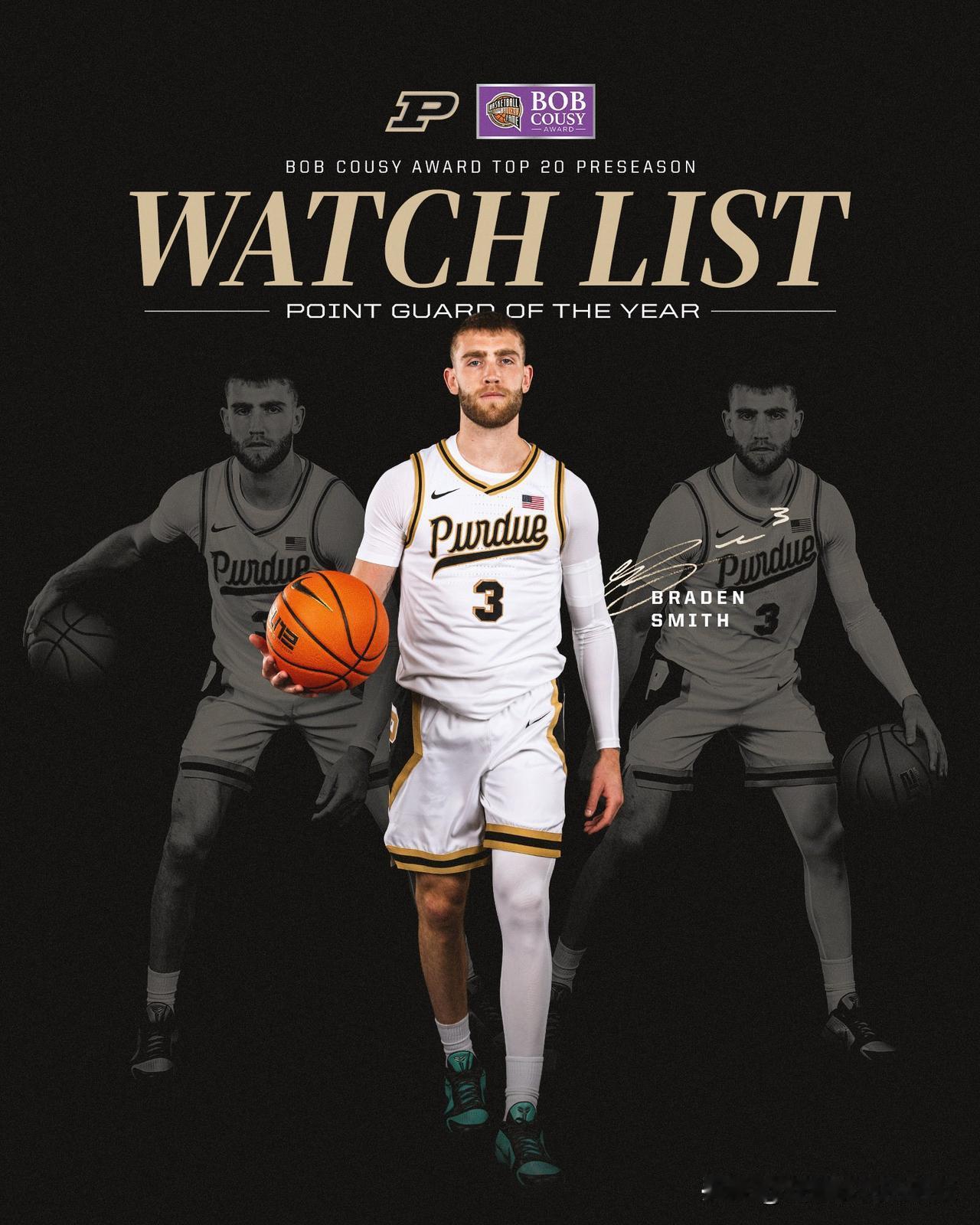 鲍勃-库西奖=年度最佳控卫,季前20人观察名单,三位新生入选,2026年nba选秀 堪萨斯Darryn Peterson,路易维尔Mikel Brown Jr,阿肯色Darius Acuff,普度后卫Braden Smith在大三赛季荣获Big Ten联盟年度最佳球员与鲍勃-库西奖年度最佳控卫。