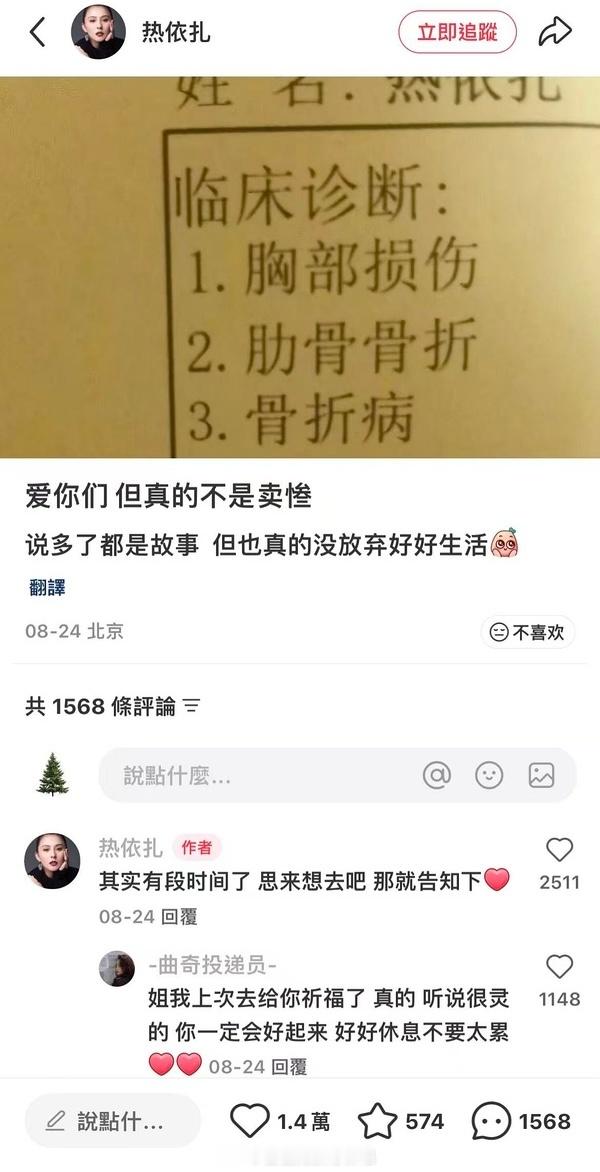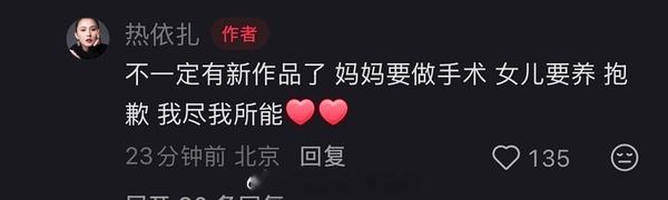 热依扎不出演《无畏无惧》第三季,透露自己暂时无戏可拍,因为上有老下有小,分身乏术,很想拍好戏 ​​​