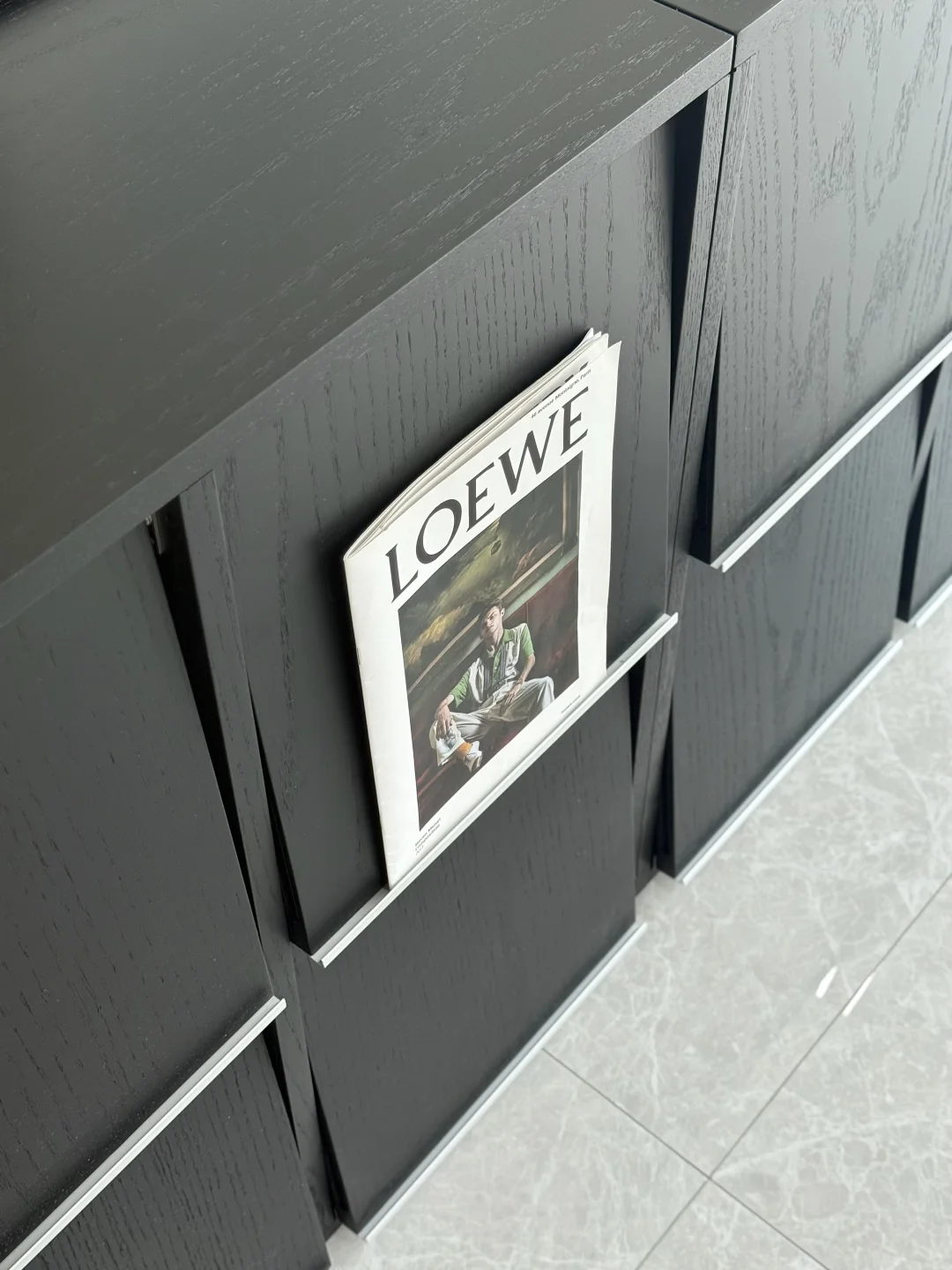 1️⃣上翻柜门的设计,好看实用,拉手处还能放下杂志或者唱片,氛围感十足