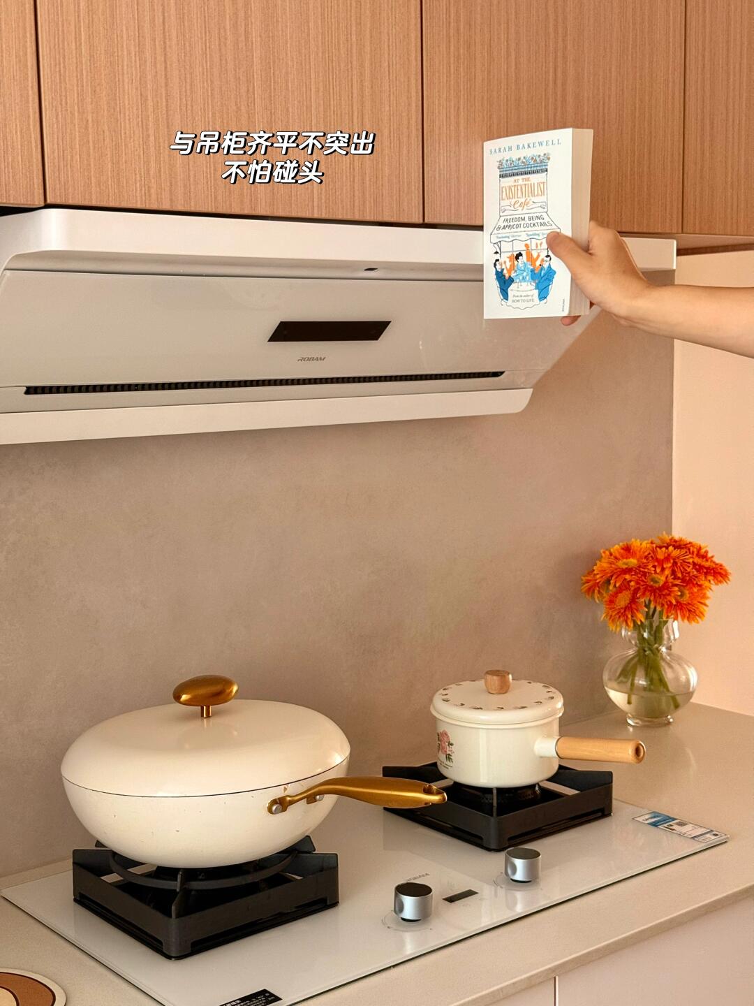 这个G2的烟机和我的厨房真的太适配了~超薄平嵌的形态可以完美嵌入橱柜,与我家白色厨房融为一体,再也不担心碰头了