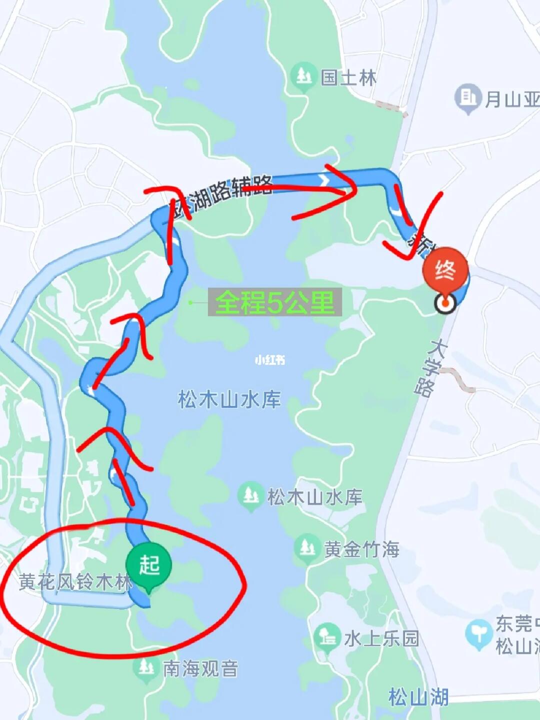 2⃣️下午在进门哪租一辆单车,从左边👈🏻开始骑行。🚏导航:松湖烟雨大学路停车场,选择步行跟着导航走,全程5公里,步行也ok。