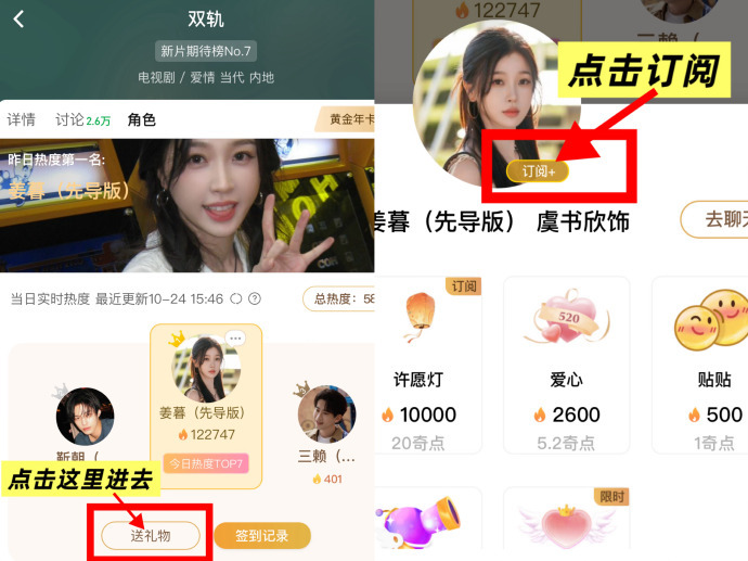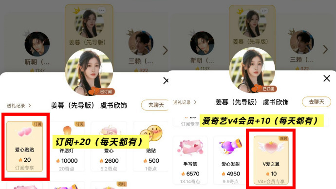 今天给姜暮角色签到了吗?[手指比心]角色订阅的免费礼物送了吗?[手指比心]爱奇艺