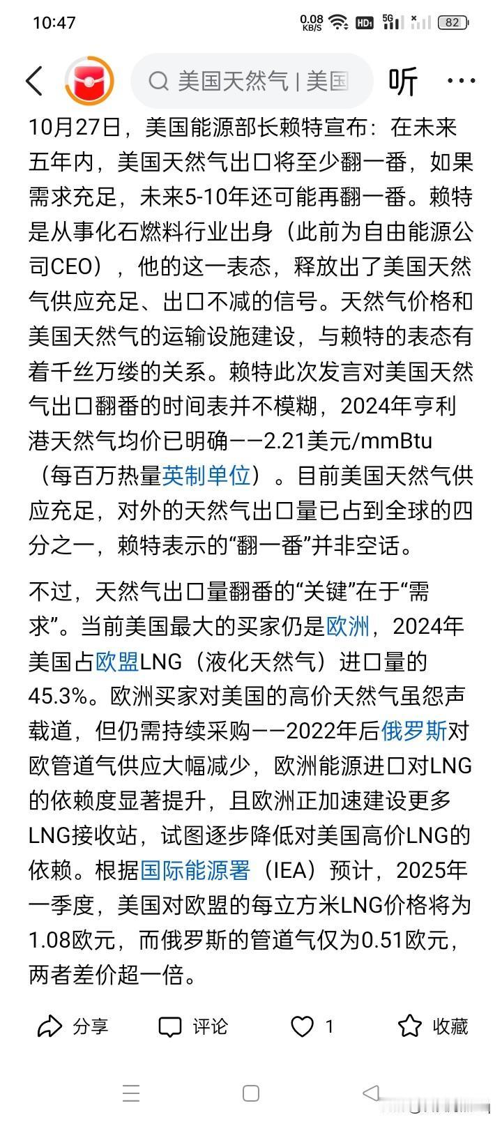 很厉害? 全世界的人都知道,美国是个科学技术发达,经济力量和军事力量全球第一的国家。然而,却偏偏没有想到,美国也是全球出口天然气最多的国家,竟然占到全球出口量的25%。 并且,美国能源部长10月27日声称:在未来五年内,美国出口天然气的数量至少翻一番;如果有足够的需求,在未来的五到十年里,还可能再翻一番。 美国既有丰富的石油,又有海量的天然气,并且拥有全世界最大的、使用不尽的煤矿,几乎差不多是要啥有啥。 老天爷偏心,让美国这个国家得天独厚,不仅仅是可能拥有全世界最多的人才,而且拥有使用不完的自然资源。