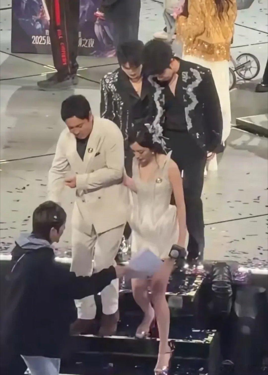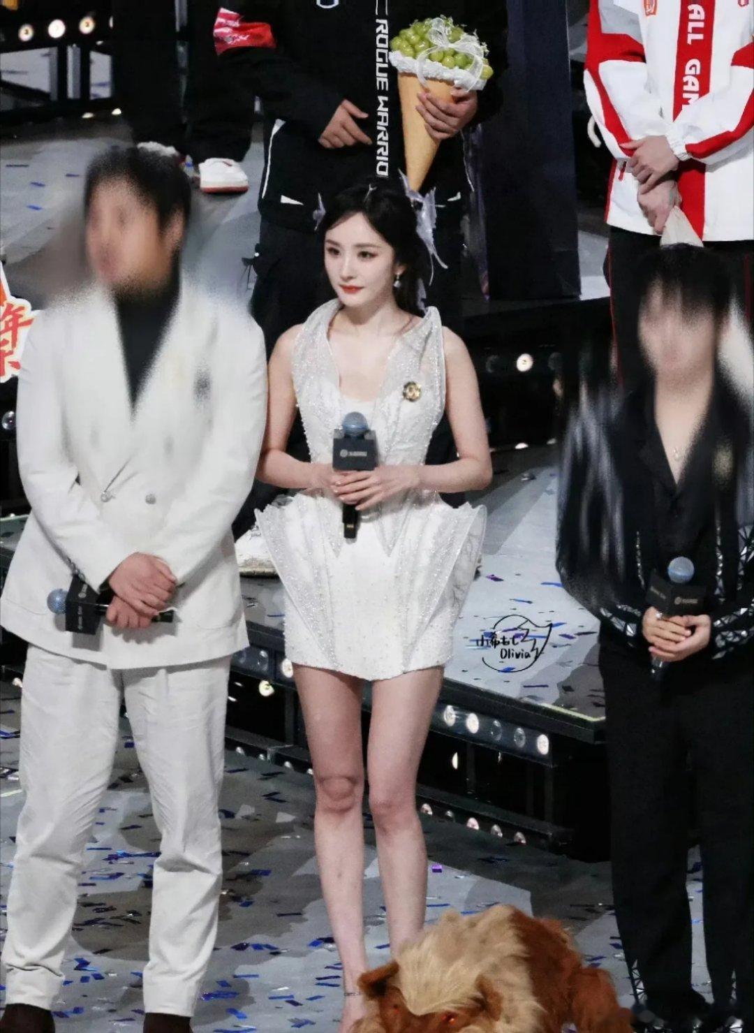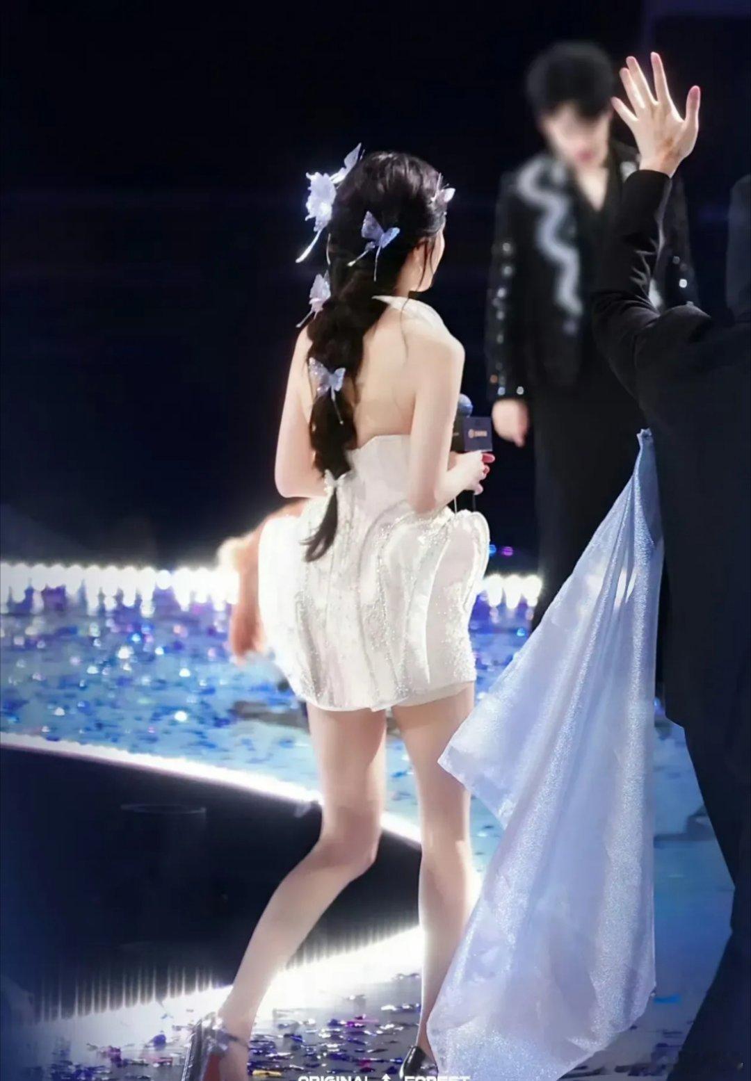 39岁的杨幂踩著十厘米高跟,扶着沈腾下台那幕格外吸睛——明明两人只差7岁,怎就显得沈腾满身“老头感”?反倒衬得幂姐嫩得像二十岁少女。一袭白色刺绣高定仙裙加身,大露长腿,生图里的美简直自带圣光,活脱脱神女降临。