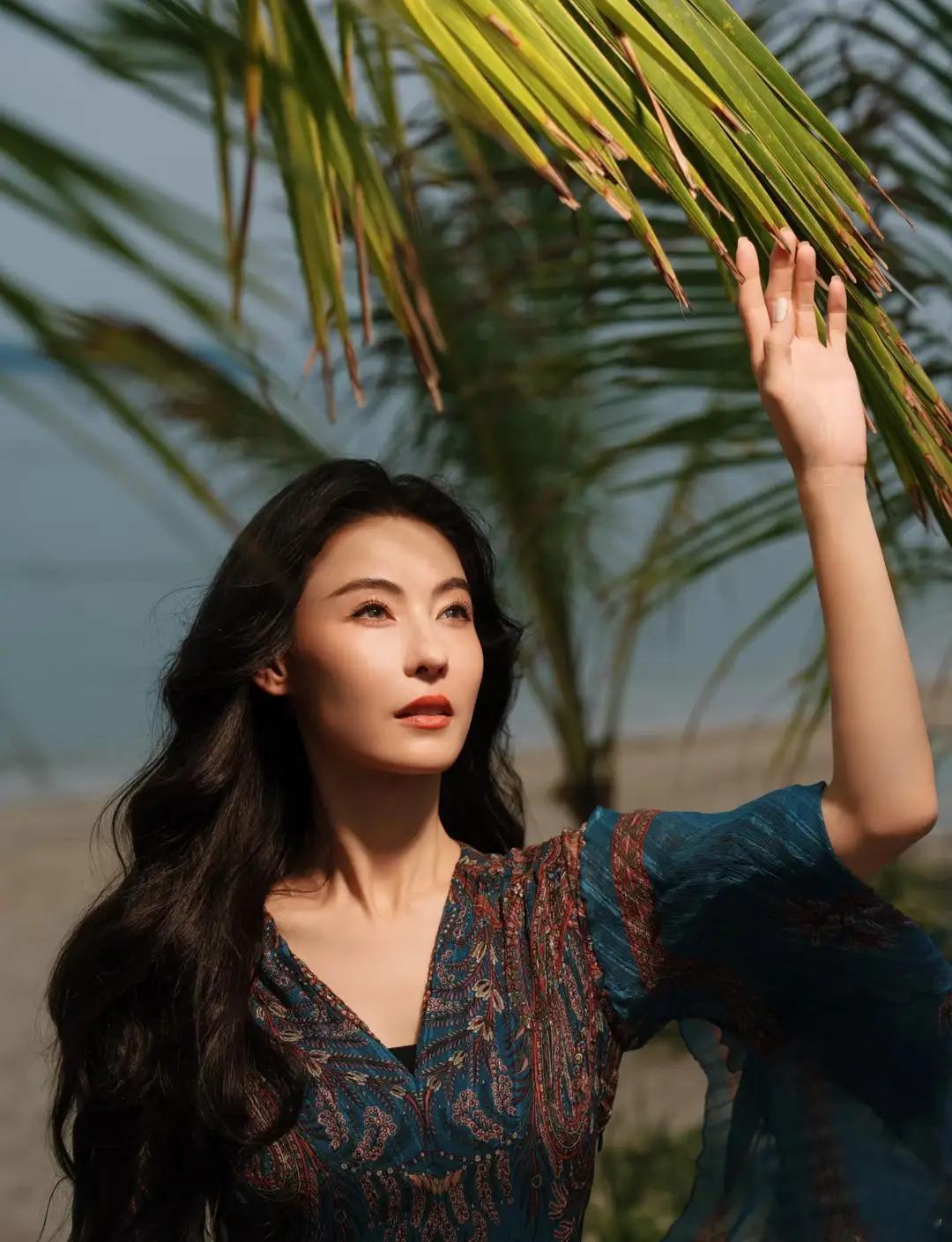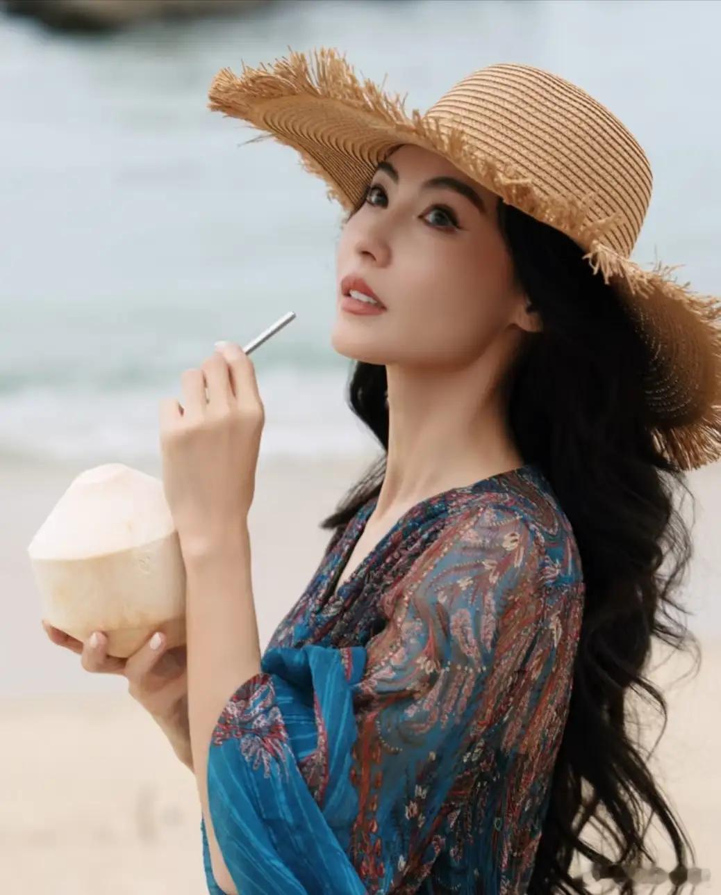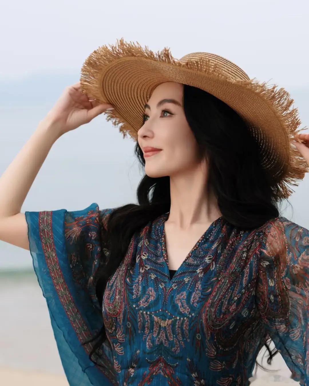 张柏芝身着波西米亚长裙漫步海边,裙摆随海风轻扬,身姿曼妙,宛如一幅流动的画,美得让人移不开眼。