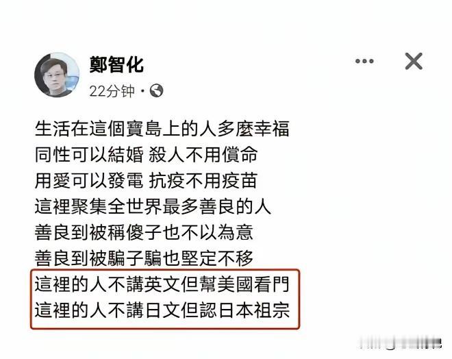 郑智化这个人他的作品本身就是以批判社会为主,本身肯定有一点反社会人格,大家早期喜欢他,除了他的歌,更喜欢他骂国民党和民进党。 而这一次的25公分台阶,让他连滚带爬,并不是第一次,大家对他反感 某综艺节目使用他的歌,并且进行改编,似乎就没有提前跟他打过招呼,他发文后,就被不少网友批评过。 他的人,他的歌,他的作品就是这个样子,为什么以前他骂国民党,民进党出这些批判社会歌曲的时候,大家会觉得说到心坎里,能够支持他。 而当他批判某综艺节目使用他的歌曲进行改编没有经过他同意,批评机场的25公分台阶对残障人士不友好,两件事情它都是当事人与直接受害者,为何会受到这么大的反噬?