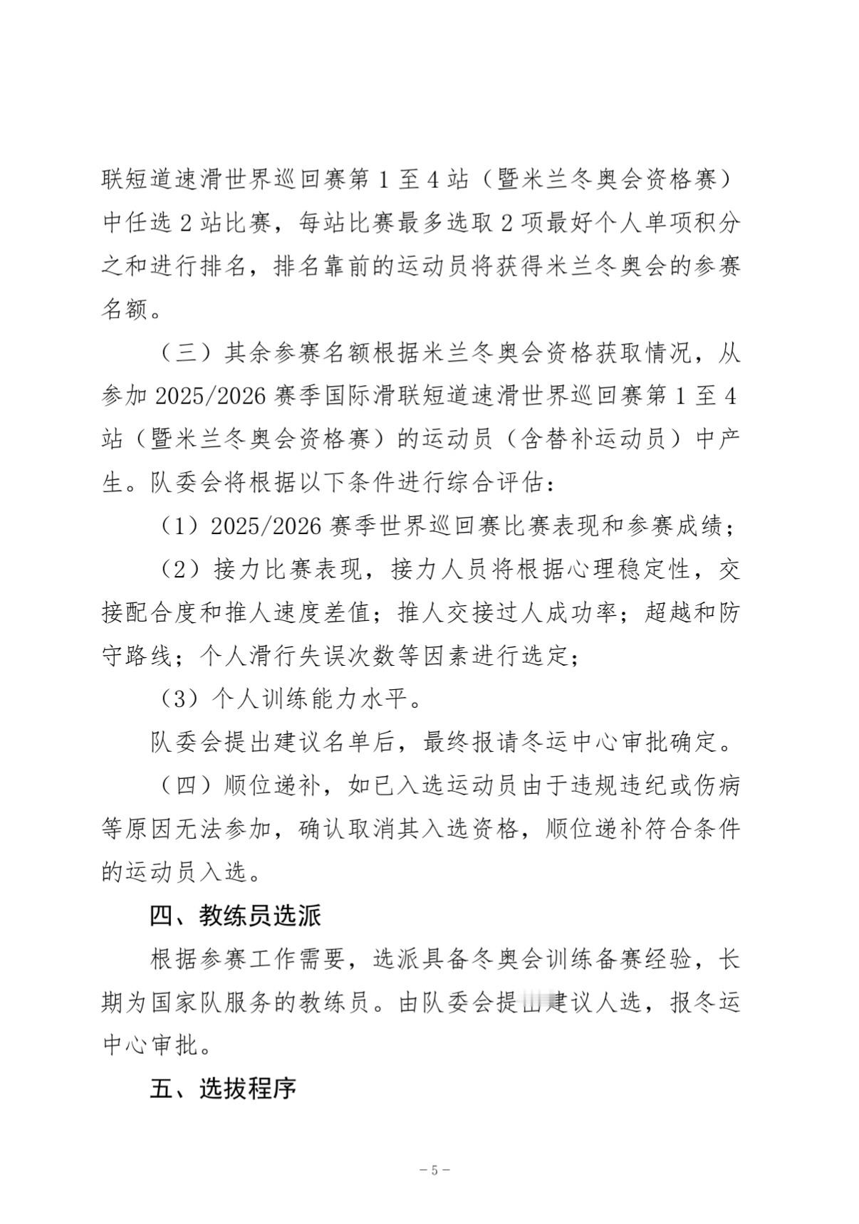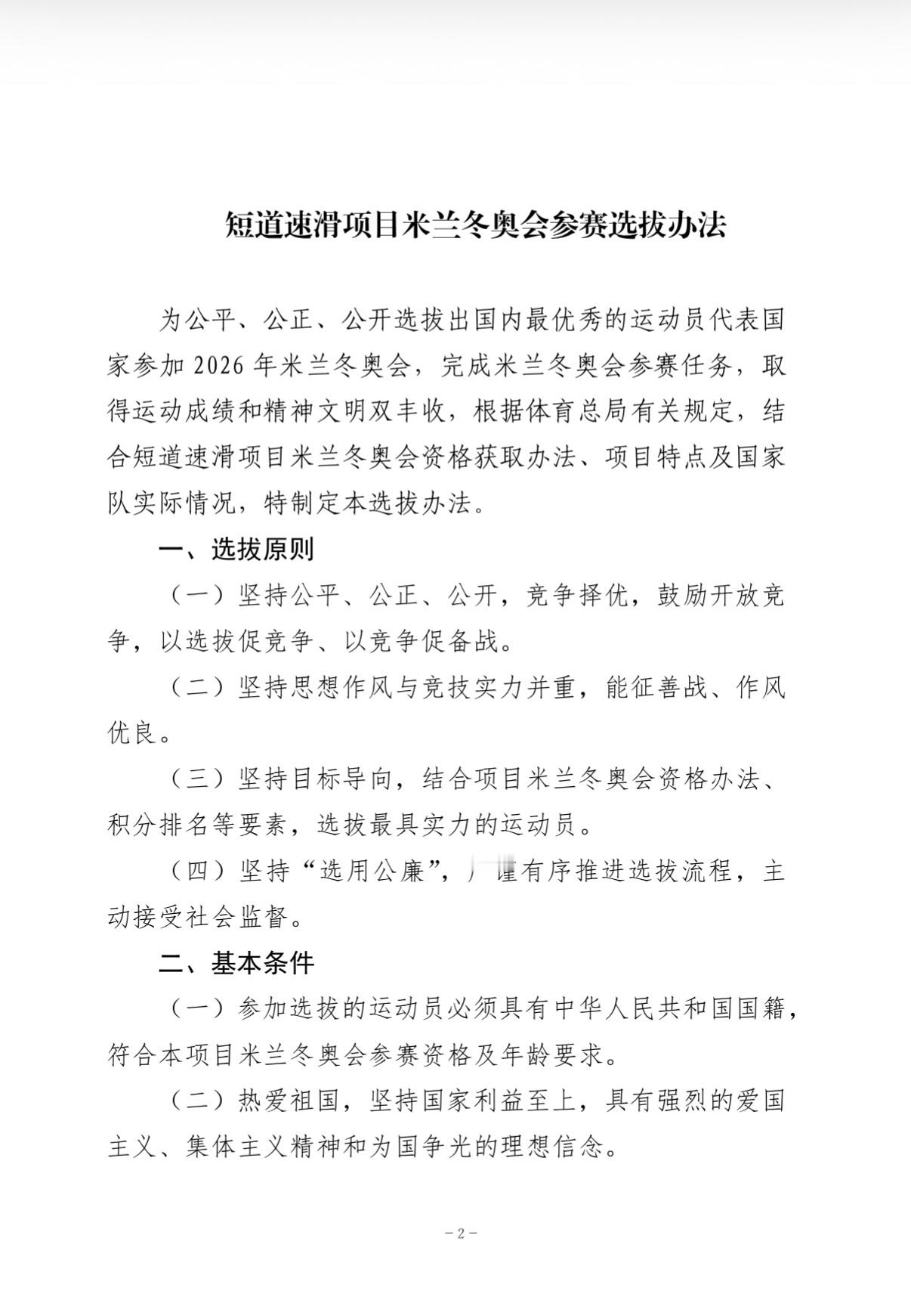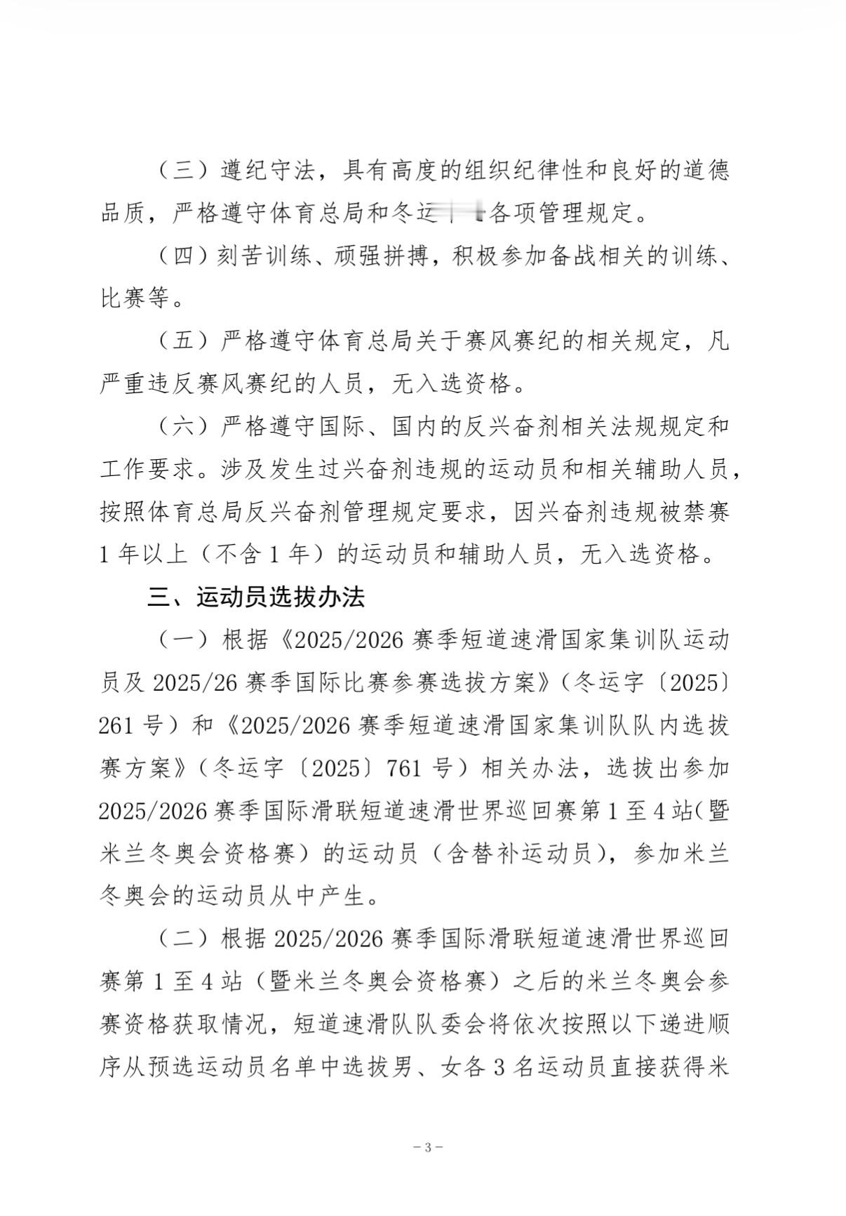 国家体育总局公示米兰冬奥会短道速滑项目选拔办法