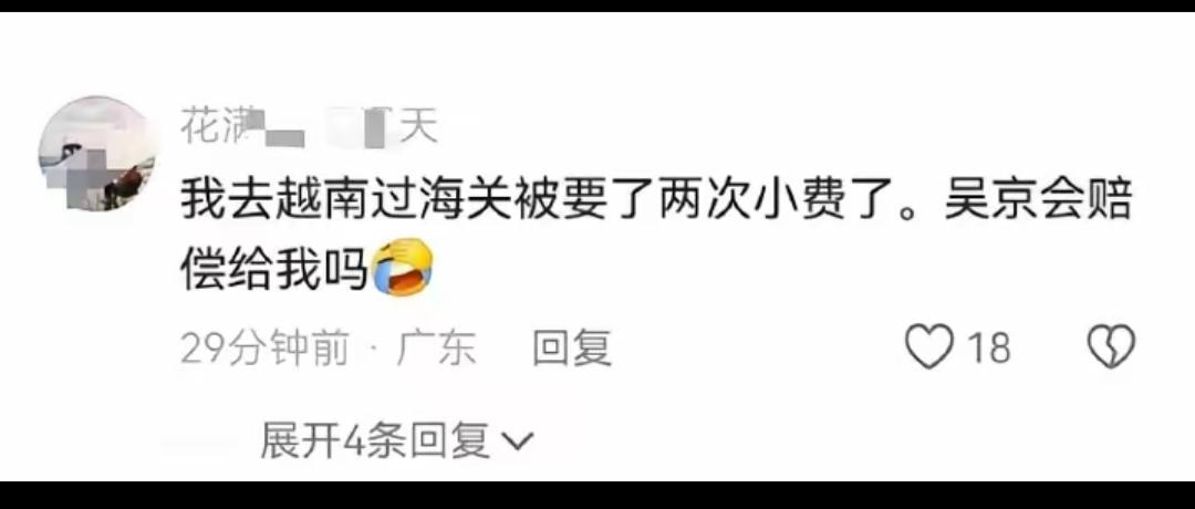 真被那些向越南海关行贿、转头逼吴京赔偿的人整笑了!越南人要你给钱你就乖乖掏,难不成他们提更过分的要求你也照做? 自己没骨气不敢维权,反倒把懦弱的锅甩给别人,把生活里的不如意全归咎于国家和体制,唯独不反思自己的问题。吴京拍电影传递热血正能量,招谁惹谁了?这种人本质就是“巨婴式甩锅侠”,自己没本事解决问题,只会躲在网上阴阳怪气发泄情绪。 维权靠的是底气和方法,不是靠道德绑架别人。把自己的窝囊账算到无辜者头上,既可笑又可悲。 你遇到过这种爱甩锅的人吗?如果是你,会怎么应对这种无理取闹?