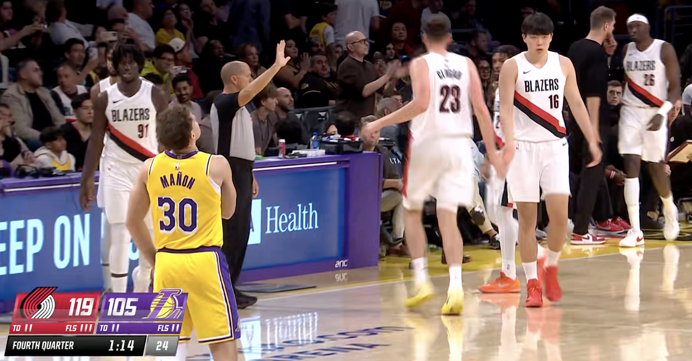 湖人缴械投降,换全替补了,输了。 ​​​​杨翰森也登场了。 ​​​