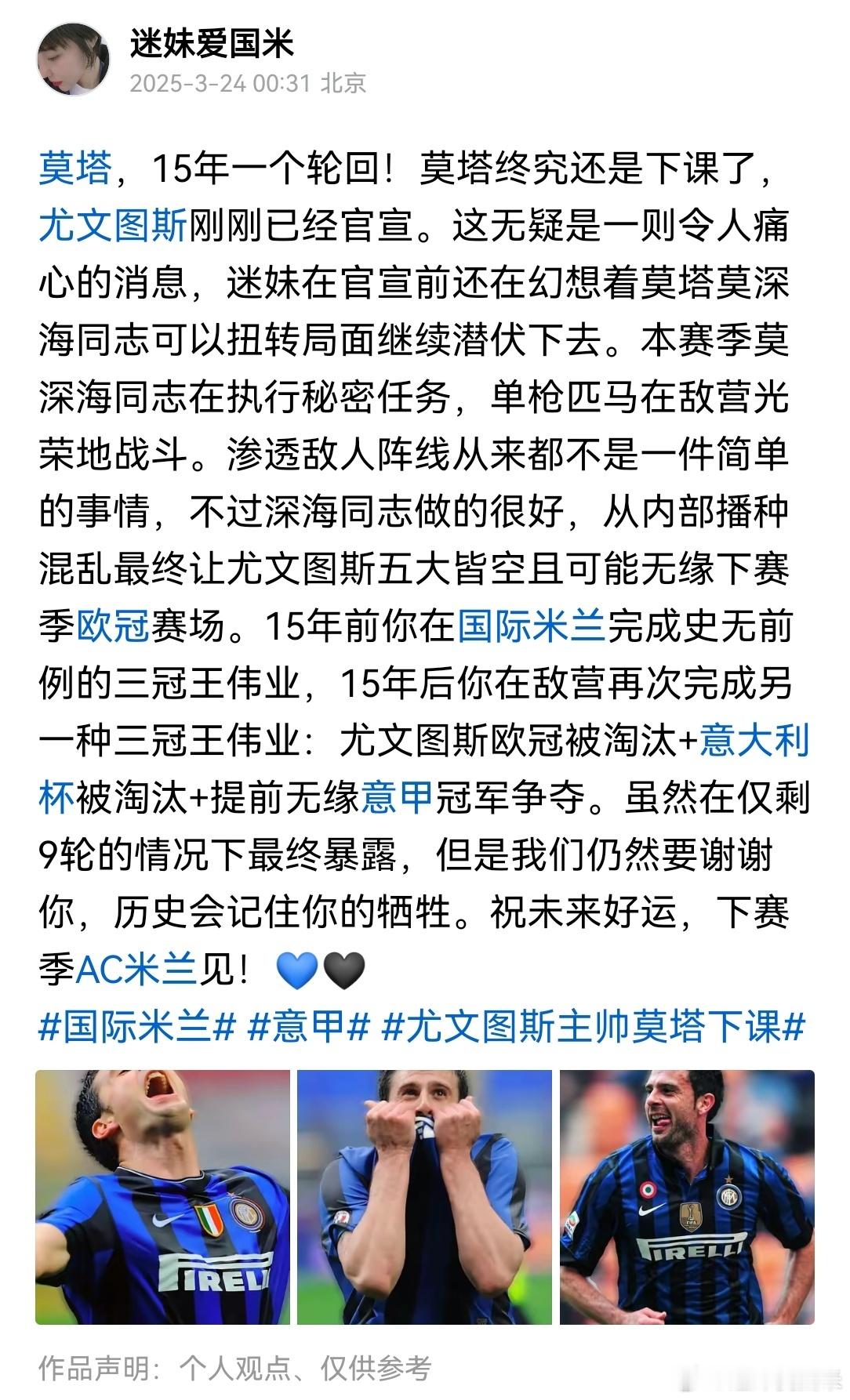期待莫深海同志再次执教尤文图斯!与其高价找别人不如让莫塔回来执教,毕竟他现在还有合同,让他回来执教天经地义。[doge][doge][doge]