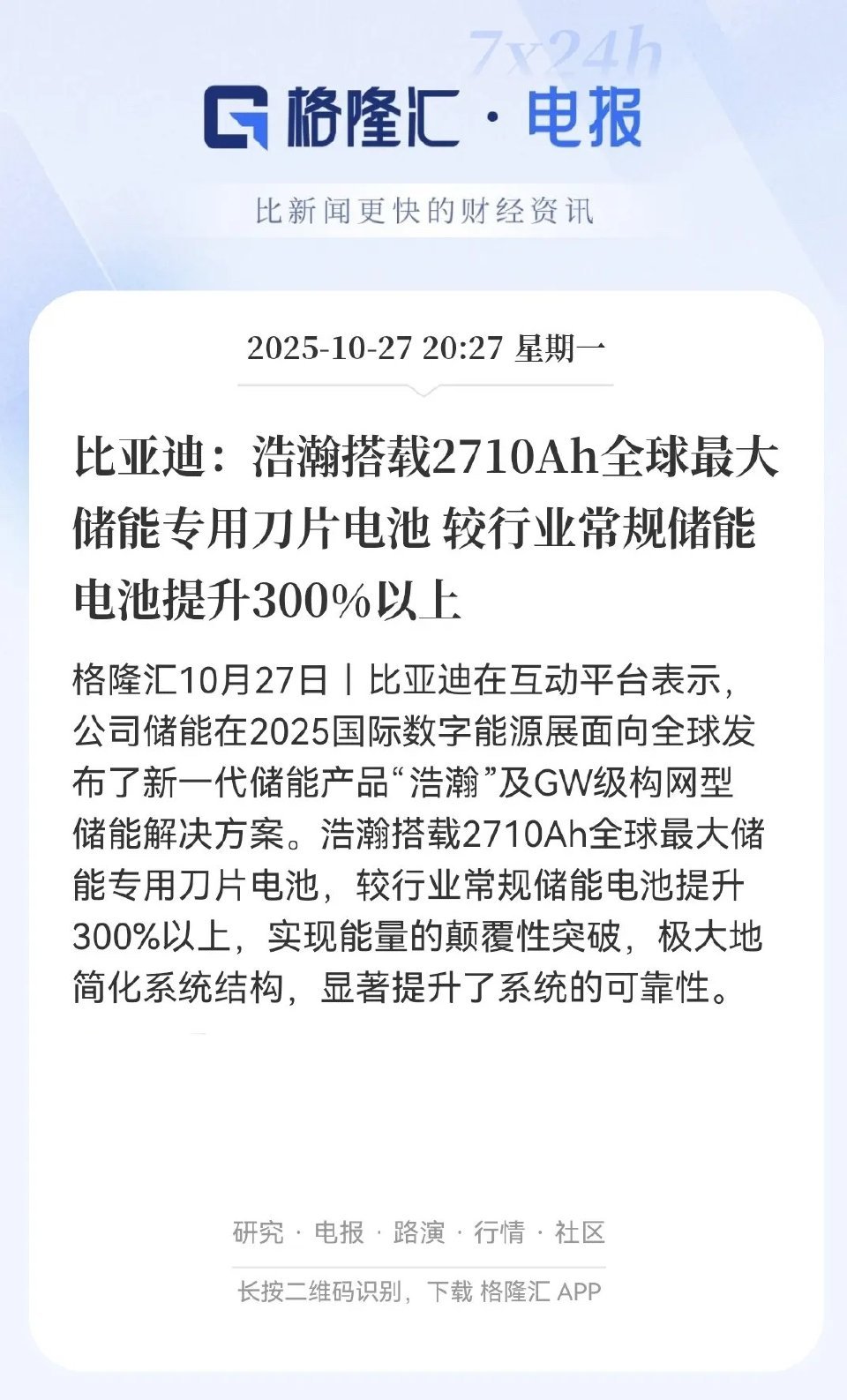 比亚迪厉害啊!新出的浩瀚储能系统,就像给电网配了个,超级充电宝,用的2710Ah刀片电池,堪称行业巨无霸,别人家储能电池跟它一比,容量直接差了三四倍!这感觉就像别人带小水杯上班,比亚迪直接扛了个大水缸!