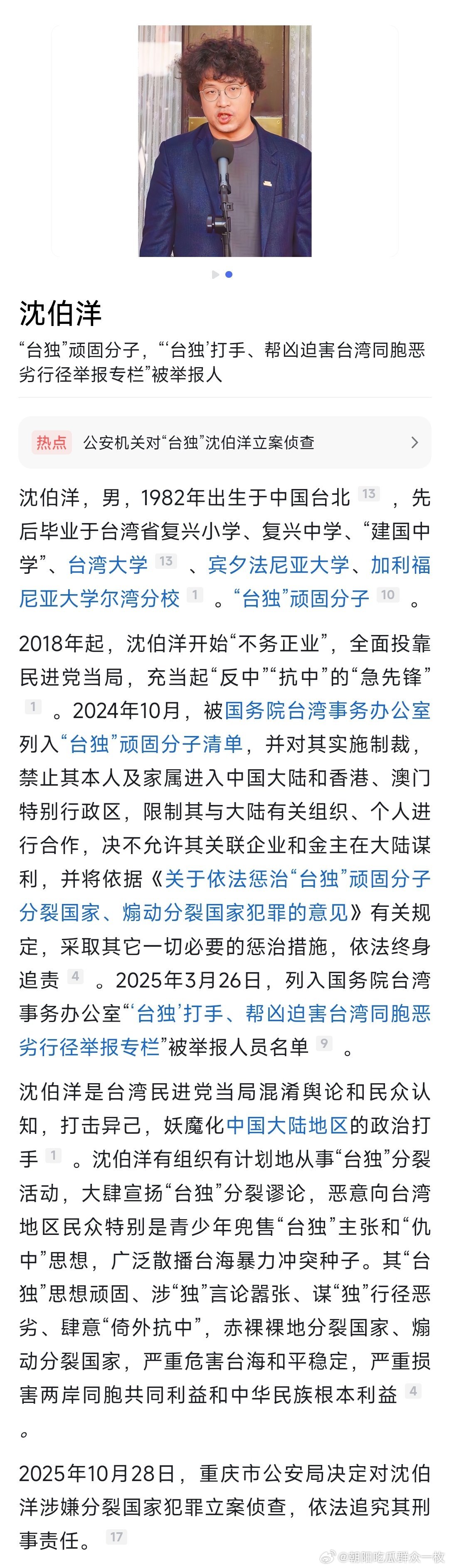 “台独”顽固分子沈伯洋,被立案侦查!热点现场