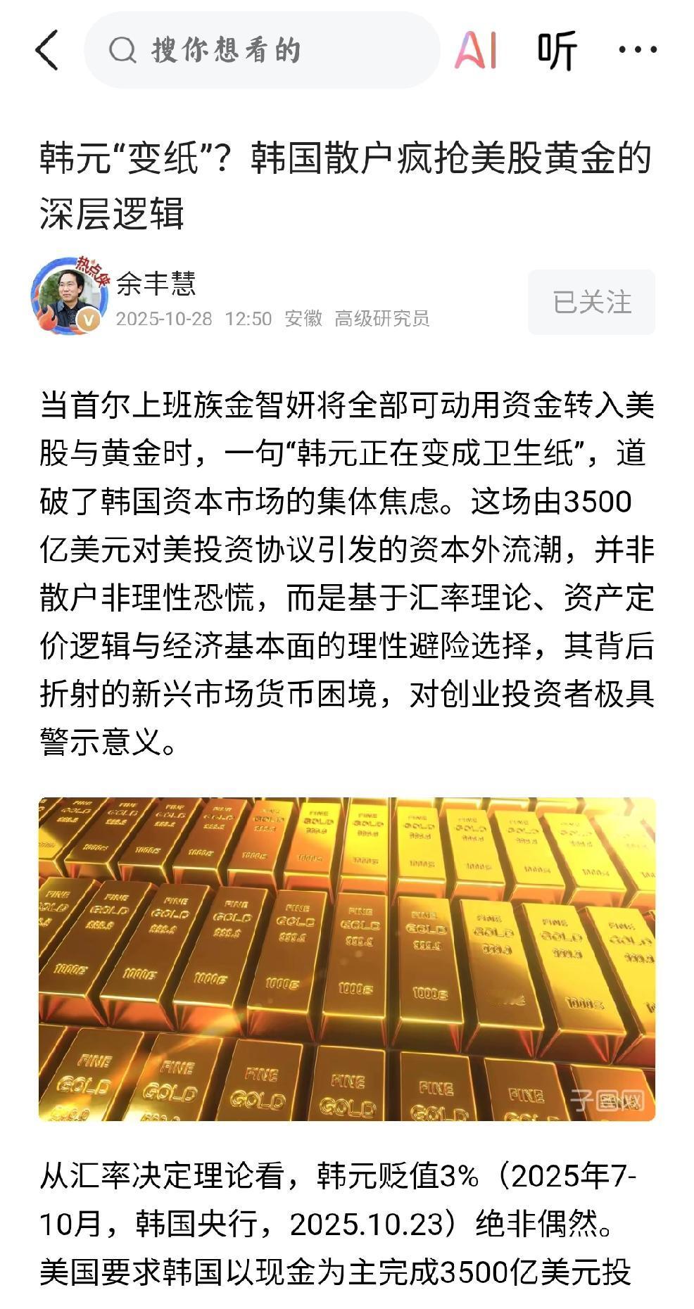 韩国:民心与政府的分离 个人观点,请相信民心民意是大事情,是国家施政的最优先级事情。而韩国的民心民意都在用脚来投票,都在用手里的钞票来投票,这意味着韩国经济未来前景充满巨大的不确定性,存在着巨大隐患,这将导致国内外的连锁反应。这将引起国际逐利资本顺水推舟的操作,也就是割韭菜的行为。 而经济行为也会引起政府政策的变化。可是当下的政府行为却是在玩火自焚。 而现在,美国总统特朗普正在日本催款,随后就会来到韩国。
