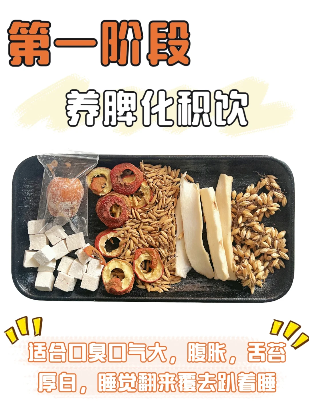 炒谷芽+炒麦芽+骨怀+山楂+茯苓+蜜枣