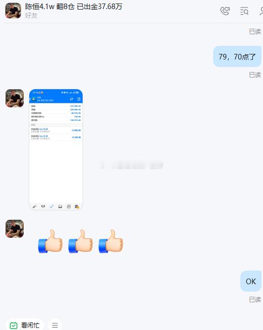 昨天一天开车赶回来,晚上也是顾于实盘,说好的福利,只能今天发给兄弟们了,兄弟们都跟上了吧[酷]!多的不说,少的不唠。跟上兄弟注意减仓护利,不要让吃到嘴里的利润回吐,爽啊[哈哈]
