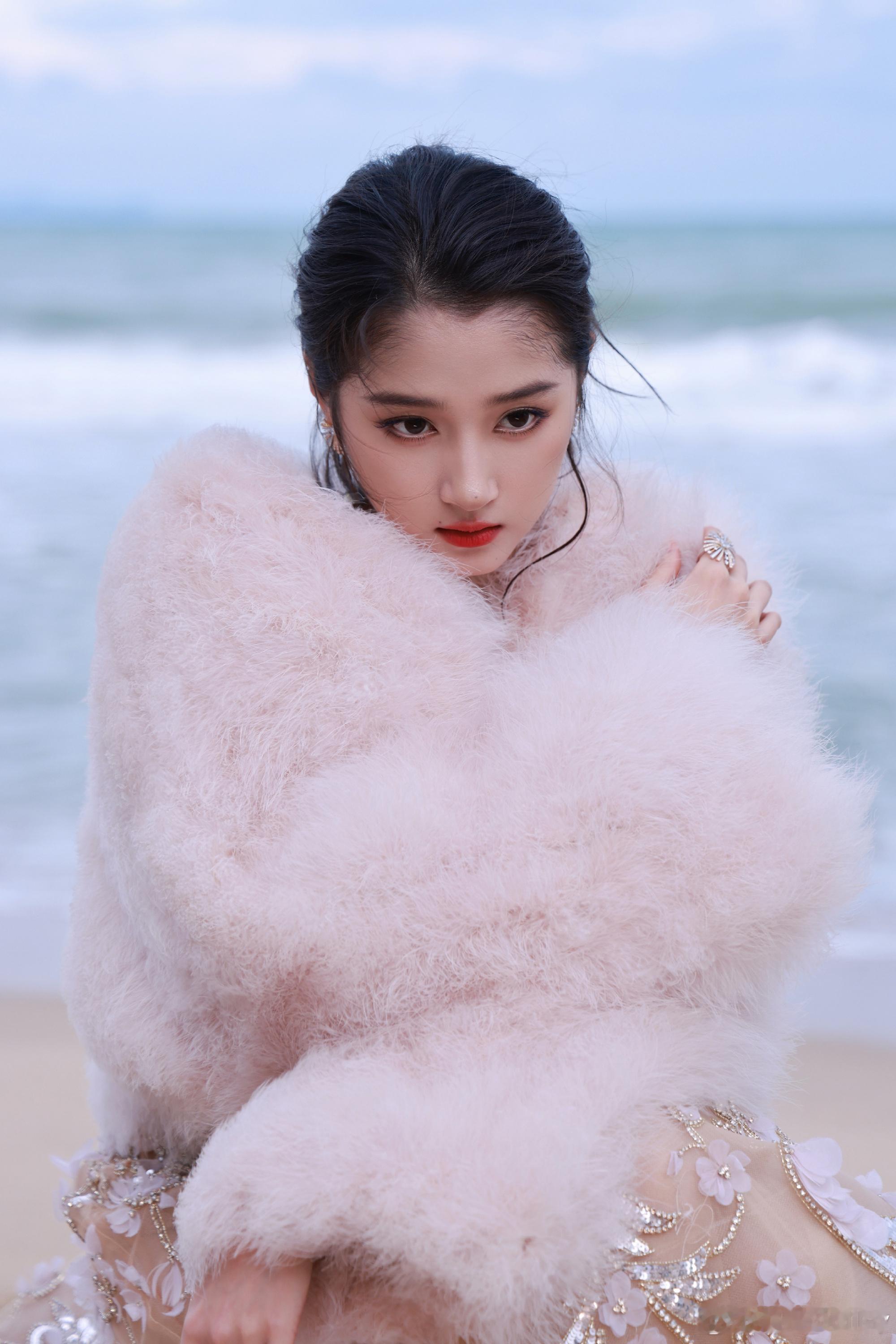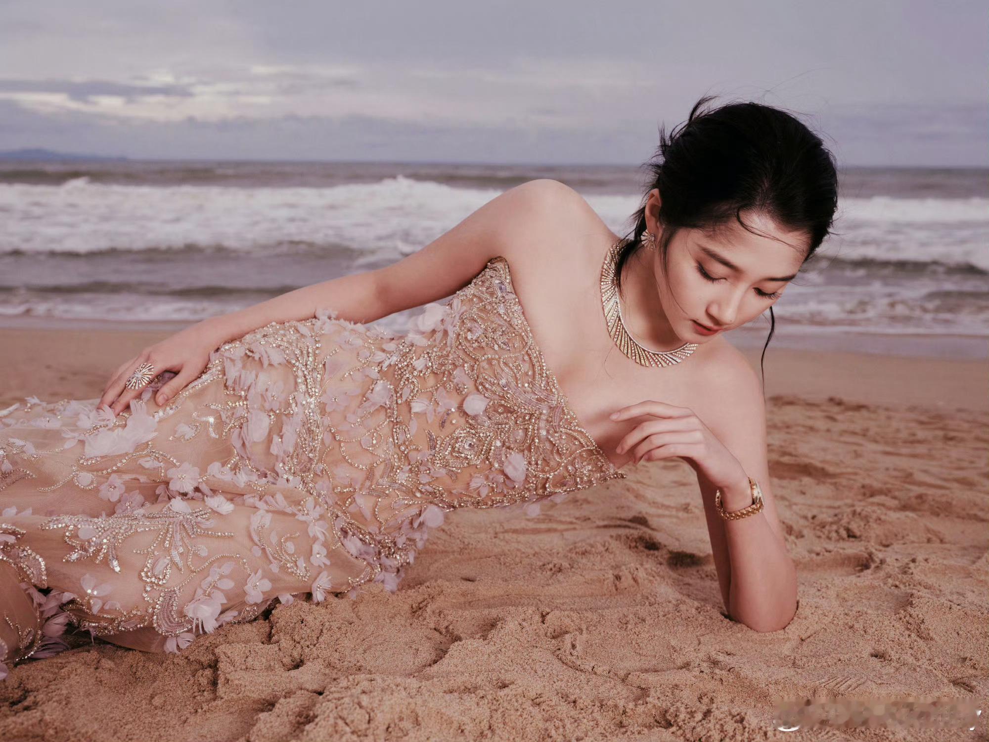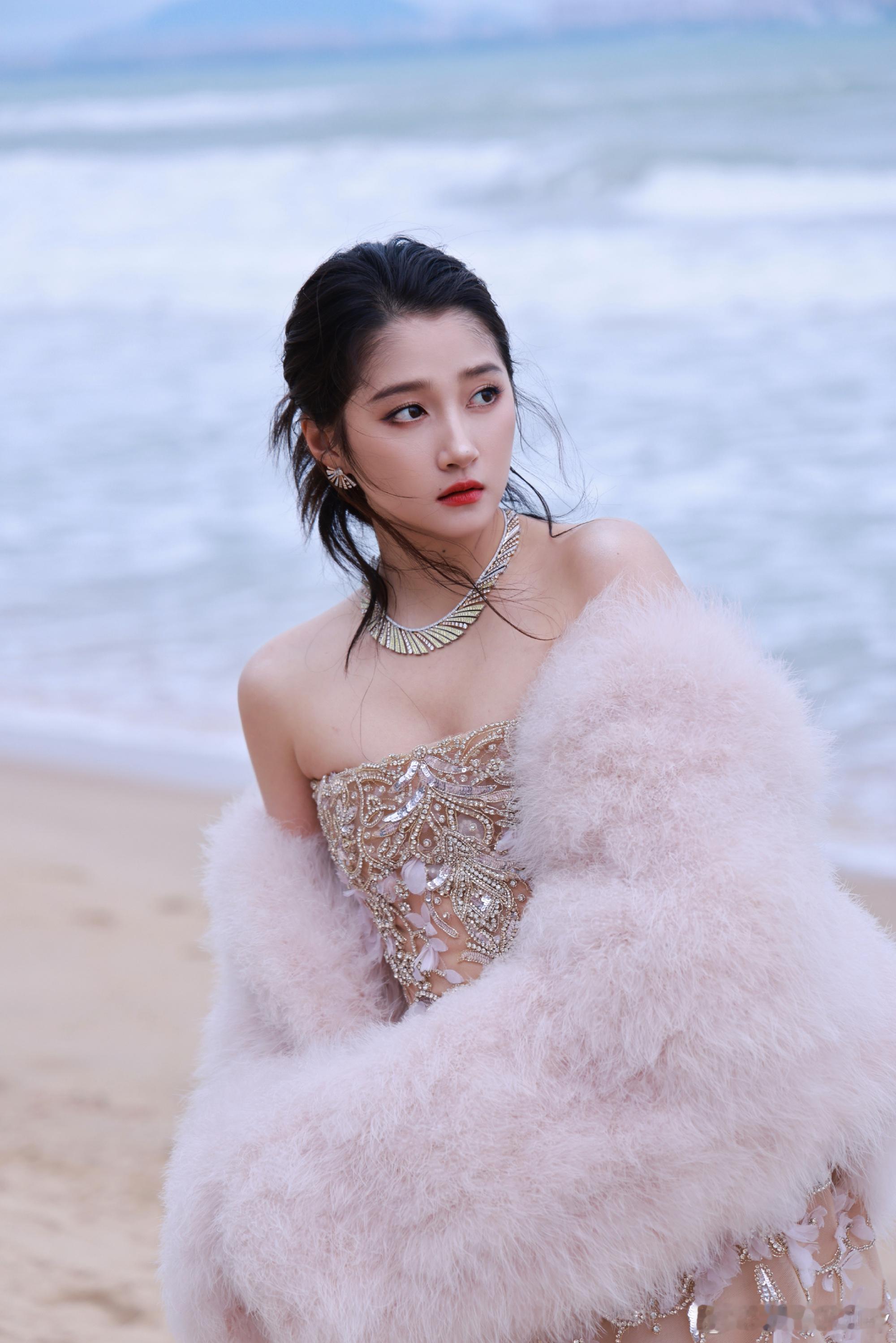 关晓彤elle盛典造型[鼓掌]ELLE风尚大典 关晓彤身穿 Elie Saab 2025秋冬高级定制系列香槟色蕾丝长裙,裙身缀满金色钉珠刺绣与立体花朵,搭配粉色毛绒披帛,整体呼应“海浪”主题。此为关晓彤第九次演绎Elie Saab高定。