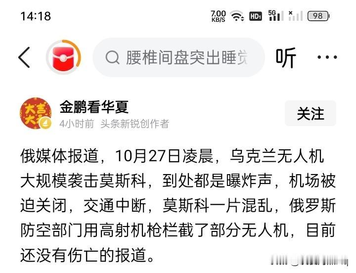 终于有战争的样子! 莫斯科远离乌克兰边境大约500公里左右,如果以目前战场在乌克兰土地上的实际距离来计算,估计距离还要更远一些。 然而,据网络上的消息说,现在的莫斯科,有很多装置机枪的皮卡车停在街头,似乎如临大敌,严阵以待。 另有消息说,10月27日凌晨,乌克兰的大批无人机袭击了莫斯科,传闻说传出来很多连续不断的爆炸声和激烈的枪声,不知道是否皮卡车上的机枪在拦截无人机,但截止到现在,好像还没有人员伤亡的消息报道。 枪支和一般的火炮,射程都是有限的,它们根本就不可能对距离500公里之外的莫斯科产生什么影响。然而,乌克兰虽然没有大量可以飞到莫斯科的导弹,却有为数众多的远程无人机可以飞到莫斯科。小小无人机的战斗力固然比不上庞大的导弹,但足以造成交通瘫痪,航空业陷入停顿,生活一片混乱不堪。 而且,乌克兰的无人机又似乎是越来越多,航程越来越远,就是载弹量可能也是越来越大,如此这般发展下去,后果可想而知。 在风声鹤唳,草木皆兵的状态生活,对于一般来说,根本就没有经历过,经历过、并且有记忆的,至少也是80岁以上的老年人。