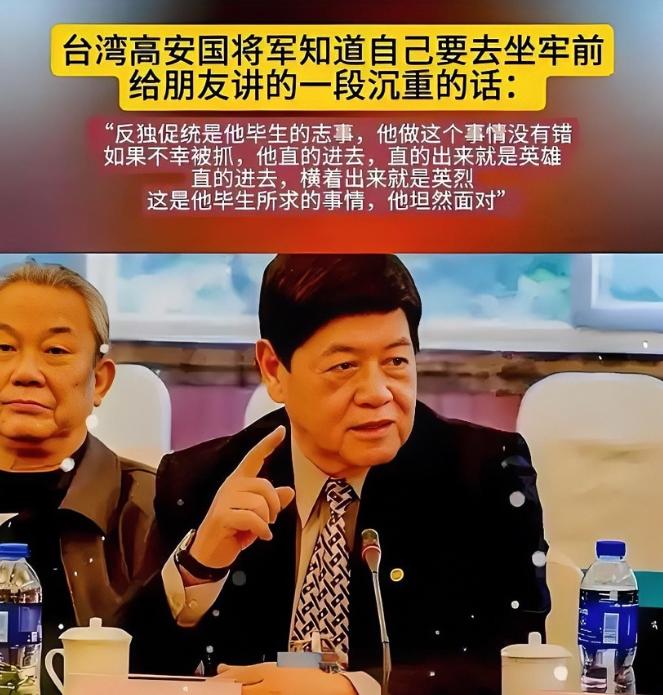 台湾高安国将军知道自己将要去坐牢后,给朋友说了一段很沉重的话: “反独促统是他毕生的志事,他做这个事情没有错,如果不幸被抓坐牢,直着进去、直着出来就是英雄,直着进去、横着出来就是英烈,这是他毕生所追求的事业,他将坦然面对” 话说回来,这位高安国将军可不是普通人,他是台湾陆军退役中将,早年从军,爬到花东防卫司令部司令官和第六军团副司令的位置,军旅生涯风光无限。 父亲是老军人,高安国从小耳濡目染,骨子里就带着一股爱国热血。 退役后,他没闲着,直接投身到岛内统派圈子,成了“退役将领社会服务总会”的副会长,到处拉人头,组织活动,旗帜鲜明地喊出反对台独、推动两岸统一的口号。 那时候岛内绿营当道,统派日子不好过,可高安国偏不怕,2019年他就公开站出来,发起“中华民族反独促统联盟”,拉拢一大批老将和年轻人,办讲座、搞游行,声势浩大。 2020年,他更狠,直接拍了个视频叫《致台湾将士》,自己穿迷彩服站在“反独促统”的标语前,号召大家联合起来完成中国统一的大业。 这视频一出,岛内防务部门直盯上他,觉得这家伙在煽动军心,暗中就开始调查。 高安国不光喊口号,还真干实事。他和一帮志同道合的人组建了“中华民国台湾军政府”,表面上看是平台,实际是想团结岛内爱国力量,对抗台独势力。 里面有退役军官,也有普通民众,他们讨论两岸和平,宣传统一的好处,甚至规划怎么在关键时刻站出来维护正义。 当然,这事儿在绿营眼里就是大逆不道,2024年底,台湾检方突然动手,给高安国扣上了一个莫须有的罪名。 结果高安国夫妇加上几个同伴全被抓,羁押禁见,罪名是违反“国家安全法”,发展组织未遂。 岛内媒体炸锅了,有人说这是政治迫害,有人觉得证据确凿,开庭时,高安国满头白发,手铐脚镣,憔悴得不行,但他一口咬定自己是堂堂正正的中国人,没做亏心事。 审判过程拖了好几个月,2025年10月,高等法院一锤定音,高安国判7年6个月,他的伴侣刘逸蓁6年10个月,其他人从5年8个月到2年6个月不等。 统派团体不服啊,蓝天行动联盟、新党头头吴成典他们带头搞营救,喊着“反独促统没错,和平统一没错”,在“立法院”门前集会,民众高举标语抗议。 国民党那边,平时挺蓝的,这次却安静得很,没大动作,估计怕卷入政治漩涡。 岛内舆论分裂,有人同情高安国,说这是绿色恐怖重现,统派被打压得喘不过气,也有人支持判决,觉得国家安全不能儿戏。 话说高安国被抓前还对媒体说,台独分子不知感恩,忘了两岸血脉相连的道理,他这番话传开后,统派圈子更团结了。 这事儿背后,绕不开赖清德这号人物,他上台后,铁了心走台独路子,搞“全社会防卫韧性委员会”,拉拢各种势力备战。 黑熊学院就是他的得力助手,这学院由沈伯洋创办,表面教民众民防技能,怎么用武器、应急生存啥的,实际被指是培训民兵,号称能动员40万人当炮灰。 学院成员多是绿营背景,接受美国资金,办培训班,教年轻人对抗大陆入侵。 赖清德开会时,重用黑熊的人,砸钱给他们,2025年预算里密件拨了2000万新台币,逃避监督。 国台办直批这是“备战谋独”,让台湾兵凶战危,黑熊不光培训,还被爆用暴力手段骚扰统派,跟踪监视,举报陷害,岛内统派人士日子越来越难过。 高安国不是孤例,岛内统派挨打的多了去,早几年,新党青年军被抓,罪名也是“共谍”,蔡英文时代就开始猎巫。 赖清德上台后,更猛,陆配被查,艺人发统战言论就遭罚,2025年3月,大陆反击,公布首批“台独”打手名单,11个人上榜,多是帮赖清德打压统派的家伙。 国台办主任宋涛放话,三个坚决:坚决支持岛内爱国力量,坚决打击台独顽固分子,坚决维护两岸和平。 两岸交流也没停,大陆推优惠政策,台商台青来大陆追梦,共享发展红利,民调显示,台湾人越来越倾向维持现状,但中国人认同在涨,统一呼声虽小,却在积累。 事件闹大后,后果显而易见,岛内社会撕裂加剧,统派低调了,但没灭;绿营支持率下滑,赖清德权力基础弱,靠外部势力撑腰。 美国那边,嘴上说支持,实际玩平衡,不想真打仗,两岸实力对比拉大,大陆经济军事实力甩台湾几条街,国际格局也变,越来越多国家认统一是大势。 2025年对台工作会议强调塑造统一大势,推动交流融合,台湾统一不是喊口号,已在推进中,赖清德他们顽固下去,只会自讨苦吃。 高安国这事儿,就像一根导火索,点燃了岛内对统一的讨论,统派虽遭打压,但精神不倒,越来越多年轻人醒悟,两岸一家亲,早晚要团圆。 这事件提醒大家,和平统一是正道,两岸同胞携手,未来会更好。