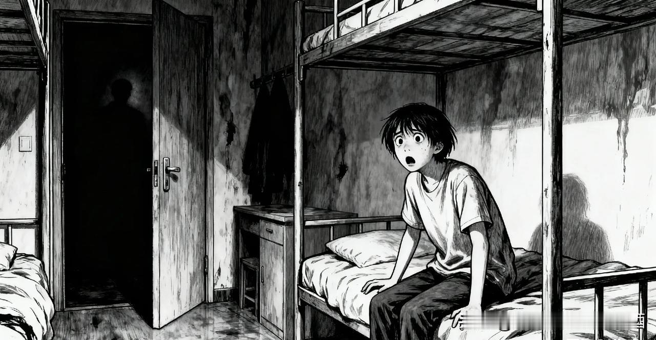 宿舍4号床空了半年,据说之前住的女生总说“上铺有人”,后来突然退学了。 昨晚我熬夜赶作业,上铺忽然传来“呼——吸——”的轻响,像有人侧躺着喘气。我吓得攥紧笔,我们宿舍是下铺住人,上铺早堆了满箱杂物,怎么会有呼吸声? 我慢慢抬头,月光里瞥见上铺的被子鼓着个人形,垂下来的衣角还在轻轻晃。正要尖叫,那呼吸声突然停了,一只苍白的手从杂物堆里伸出来,指尖挂着半块饼干——那是我昨天掉在上铺缝隙里的。 今早我掀开上铺的被子,杂物好好堆着,只有饼干不见了,箱子上用口红画了个歪歪的笑脸,旁边写着:“谢谢你的零食!”
