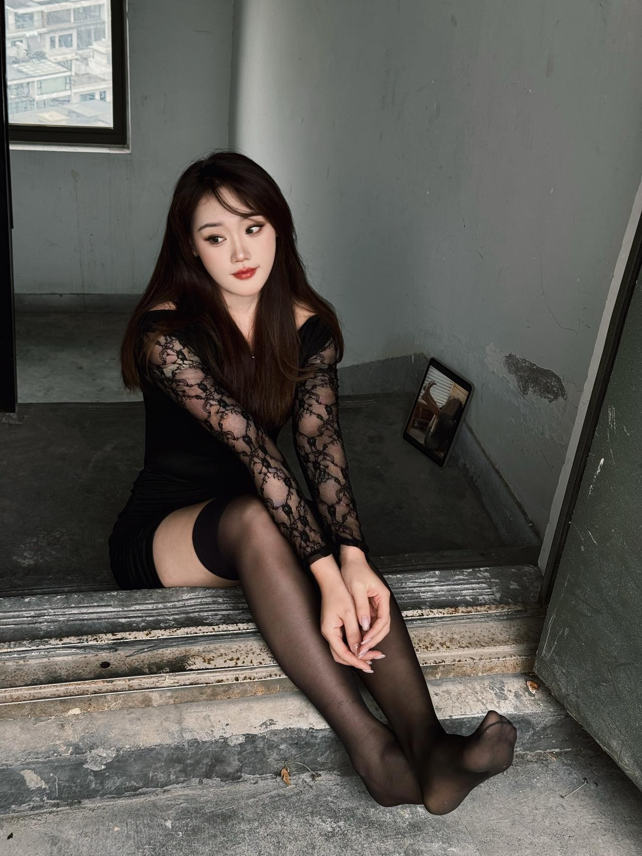 夜拍黑色热裤搭配短靴丝袜美腿小姐姐 !!!分享街拍小姐姐