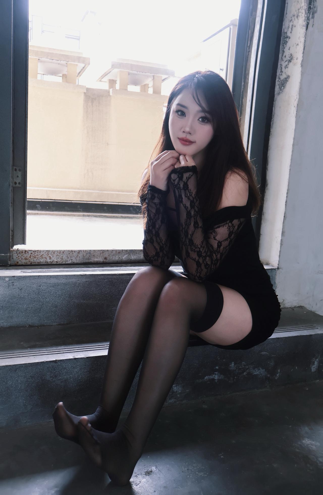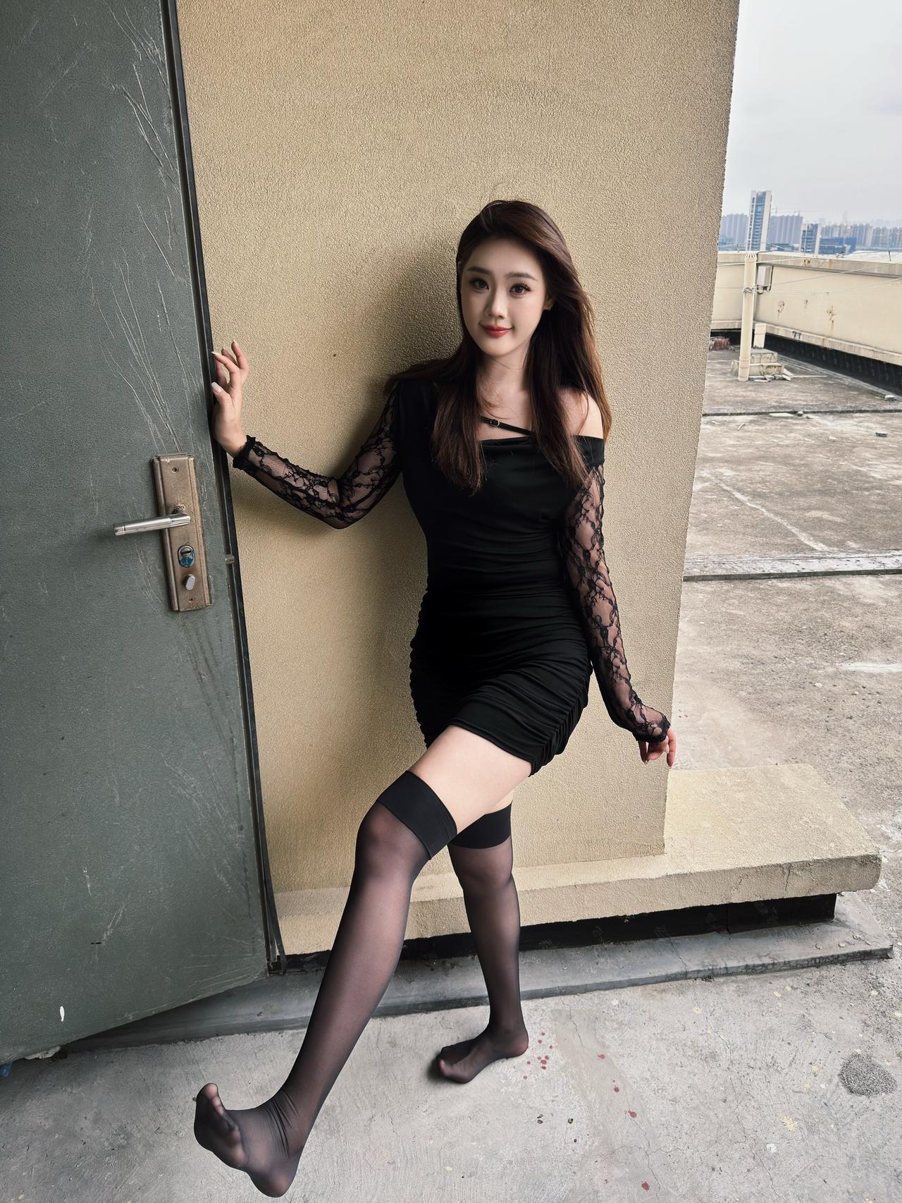 黑色吊带紧身裙美腿车模敏敏 !!!她是怎么做到完全精准的长在了我审美点上!