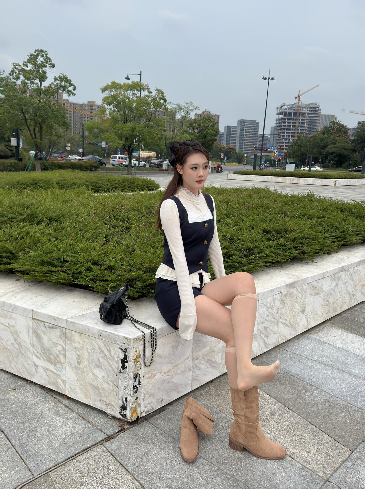 夜拍黑色热裤搭配短靴丝袜美腿小姐姐 !!!分享街拍小姐姐