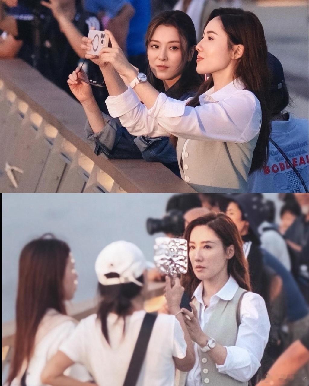 张天爱跟素人合影,胯真的好宽,大宅院似的