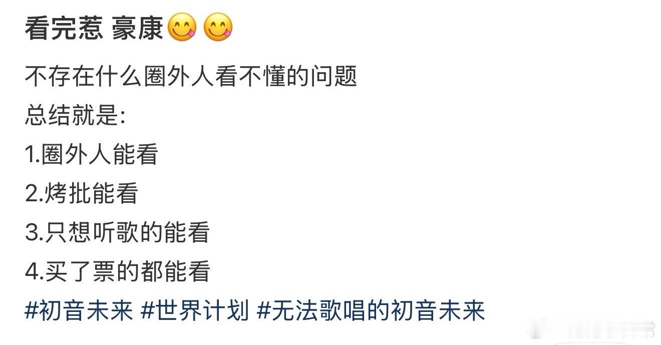 谁说只有烤批才能看懂初音未来 很负责任的说一句,不是只有打游戏的烤批才能看!友情与梦想的剧情直接共鸣。后半程五个组合连唱简直嗨爆,全场挥荧光棒打call,压力瞬间清零!这才是当代年轻人的终极解压神器,信我,快冲!