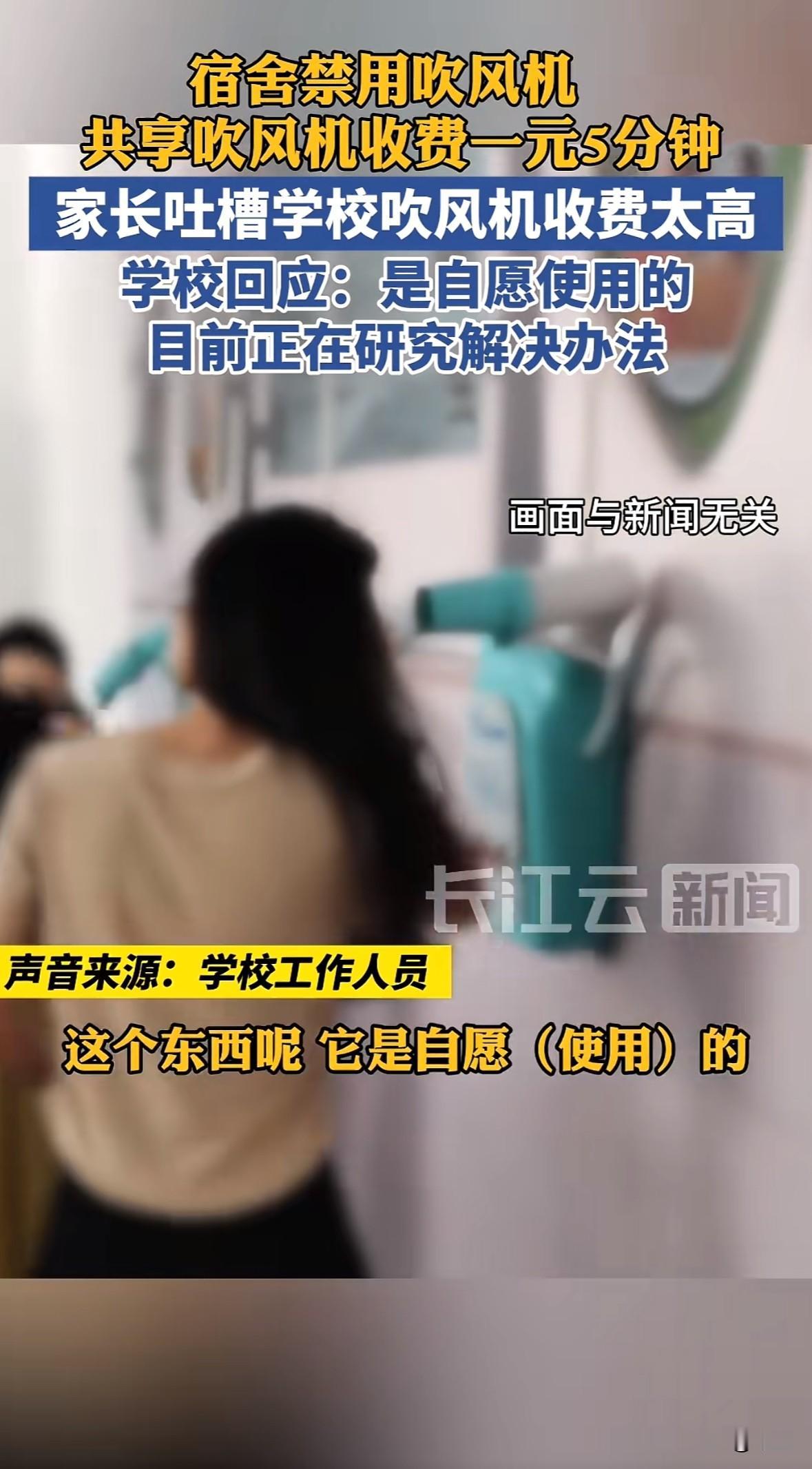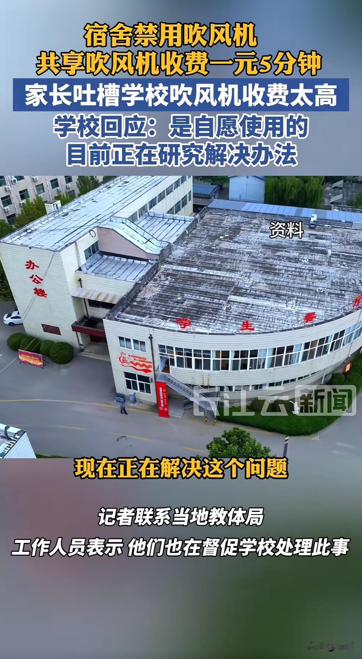 山东曲阜市职业中等专业学校,宿舍不让用大功率电器,走廊和浴室装了第三方运营的共享吹风机,收费1元5分钟。有学生家长发帖质疑太贵,算下来吹次头发要2块,每月可能花24块,直呼乱收费。 10月27日校方说成立了工作专班,会给交代,还称设备引进几年,自愿使用,之前没接到反馈。当地教体局24号接到工单,正督促处理,暂没结果。 这价格确实离谱,1000瓦吹风机5分钟电费才几分钱,算上成本1元20分钟才合理。吹风机是防感冒的刚需,学生生活费有限,学校该保障而非借共享创收。其实公开成本、定低价或搞月卡,学生都能理解,别让小事吹凉了信任。