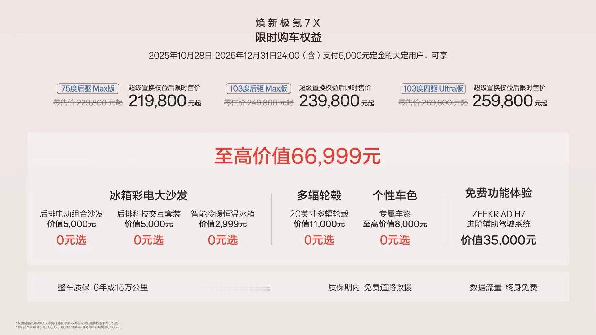 听劝的极氪,“掏家底”式产品改进,新款在这个价位已经没有能打的对手了。标配麂皮绒包覆顶棚、四门双层夹胶静音玻璃、Thor-U芯片等配置,用户想要的都有了。焕新极氪7X实车体验焕新极氪7X上市