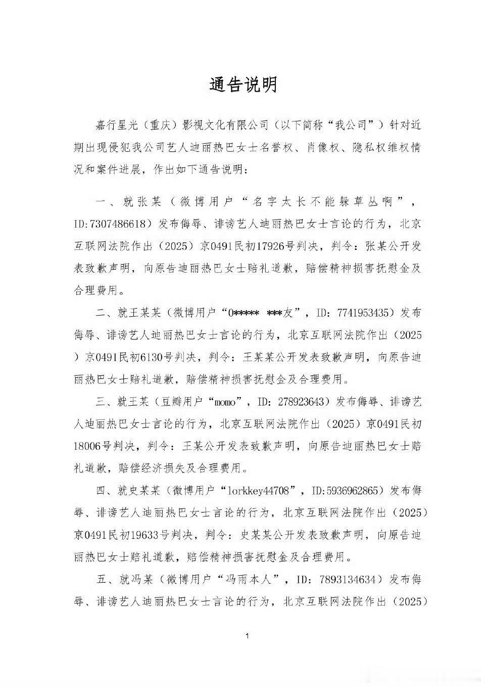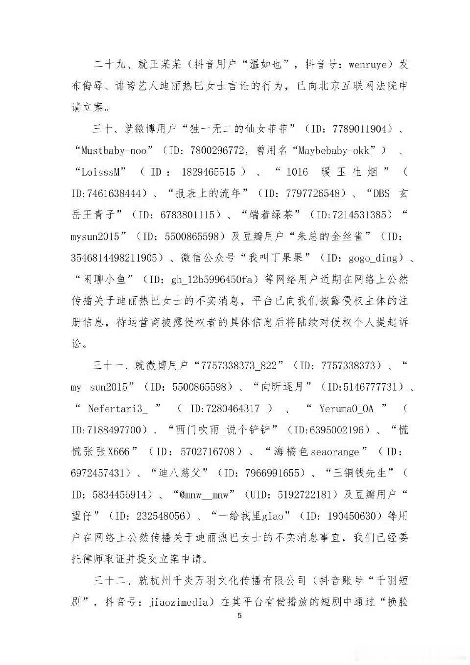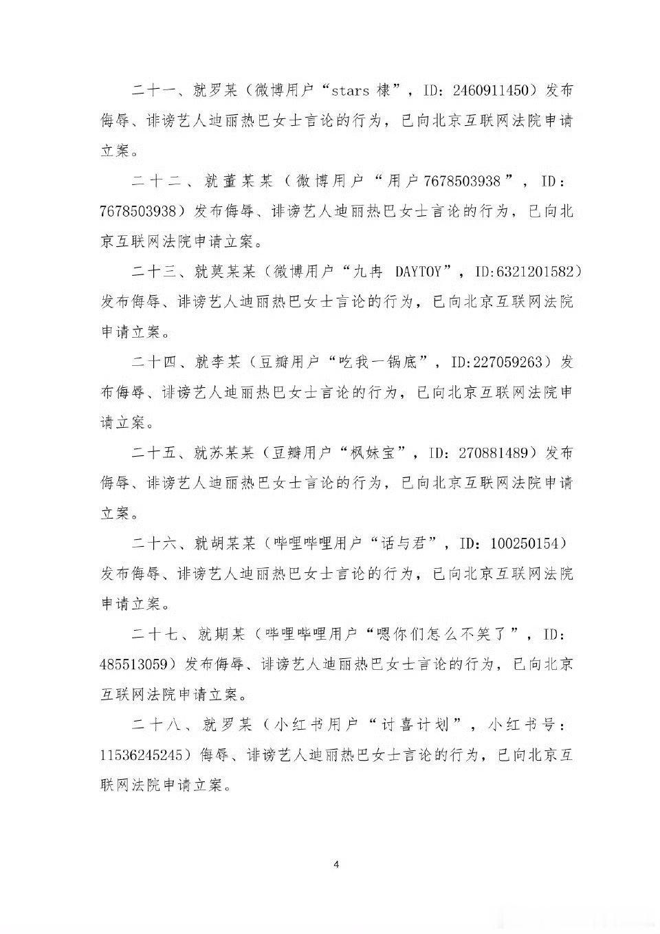 迪丽热巴全平台一下告了三十好几,且没给id打码,很给力