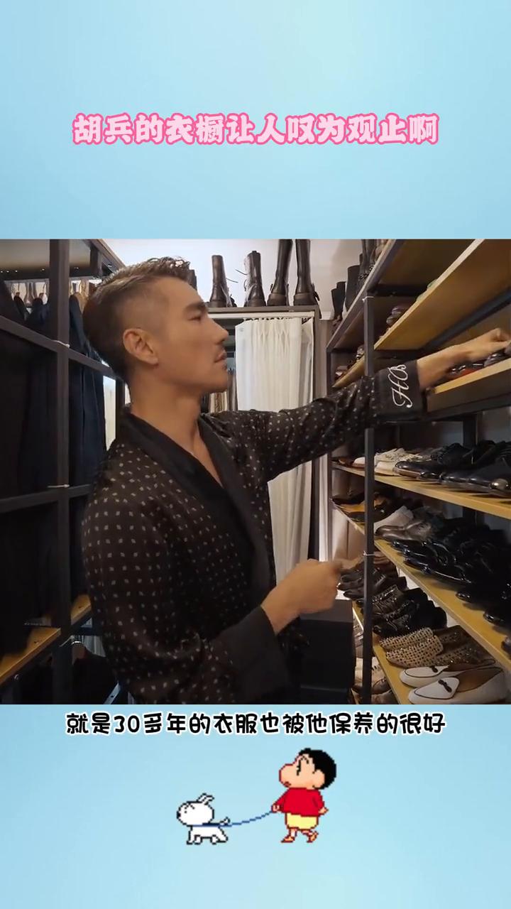 胡兵的衣橱让人叹为观止。 终于看到胡兵的衣橱了,他的家简直就是世界男装的图鉴。果然超模的衣橱永远让人眼前一亮,每次走秀后品牌都会给他送衣服,就是30多年的衣服也被他保养的很好。这一排的白衬衫没有一件是发黄的,谁看了不说一句牛。