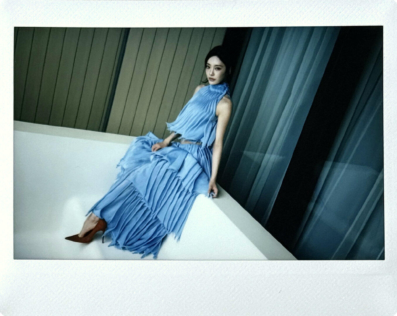 蓝色套装搭配低扎发,恰到好处的红色高跟鞋点缀,好有态度的一套👠宁艺卓[超话]