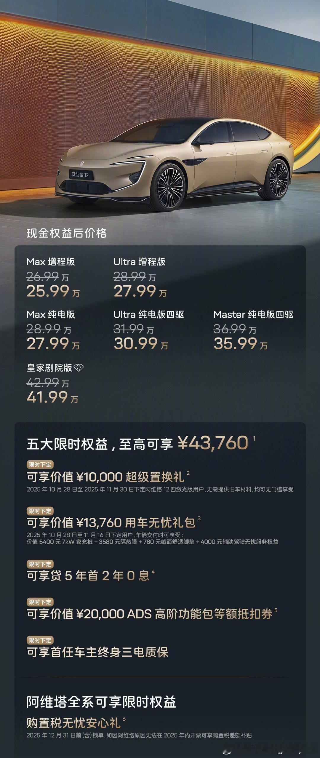 阿维塔12四激光版正式上市了,这次再次放大招,尤其是配置上做到了阿维塔12十二项同级独享!