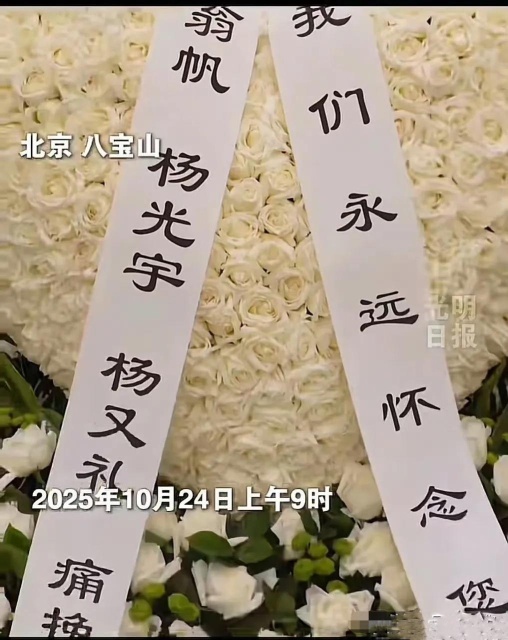 杨老先生的长子为什么没有出席告别仪式? 我有两点大胆的猜测: 1、大家注意没有,按以往流程,家里的长辈走了,是应该由长子或者长孙来捧画像的。但那天捧着杨老先生画像的却是一个不认识的年轻人。 2、而且挽联里并没有出现长子的名字,这不符合规矩。就算长子临时有事,不能回来,也不应该不给他留名啊。 有没有可能,我是说可能,之前的传闻是真的呢?