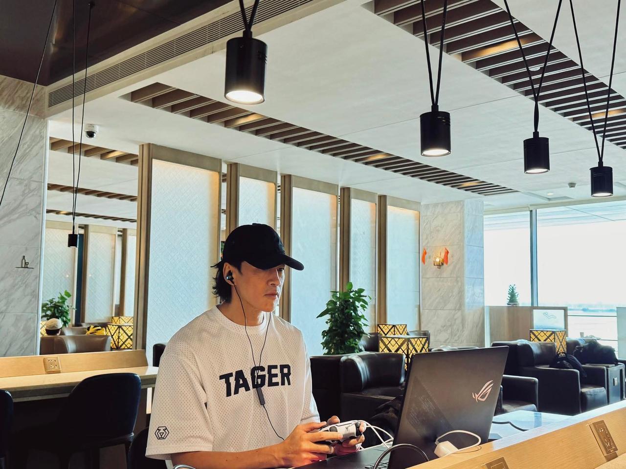 这位帅哥不管去到哪里?只要一有空,就得联网玩一把,完完全全的游戏迷。