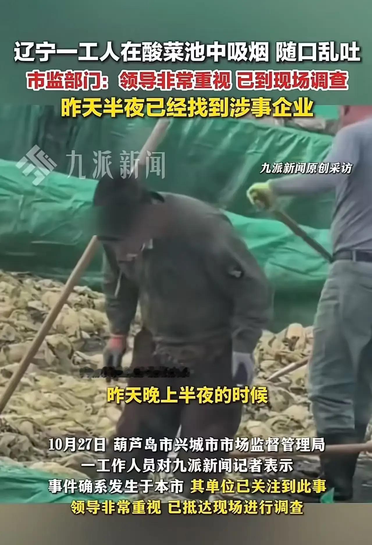 喜欢吃酸菜的朋友们,这次你们的天可能真的要塌了!近日辽宁一工人竟在酸菜池中吸烟,还随口乱吐痰,这画面简直让人不忍直视! 据了解,这起事件发生在辽宁某酸菜加工厂,一名工人在酸菜池中作业时,不仅吸烟,还随口吐痰,完全不顾及卫生和食品安全。这种行为被曝光后,立刻引起了网友们的强烈反响,大家纷纷表示,这样的酸菜,谁还敢吃?市监部门也迅速介入,领导非常重视,已经到现场进行调查,并在昨天半夜找到了涉事企业。网友们也是脑洞大开,纷纷调侃这是“老痰”酸菜,“足”时发酵,“烟”制而成,这样的酸菜,恐怕是要成为“网红”产品了。不过话说回来,食品安全问题可不是小事,这起事件也再次提醒我们,无论是生产者还是消费者,都应该时刻关注食品安全,共同维护一个健康、安全的食品环境。 这起酸菜池中的“奇葩”事件,真是让人大跌眼镜。食品安全无小事,希望大家都能重视起来。对于这起事件,你有什么看法呢?快来评论区留言讨论吧!东北大缸酸菜 腌缸酸菜 泡酸菜 酸菜做饭