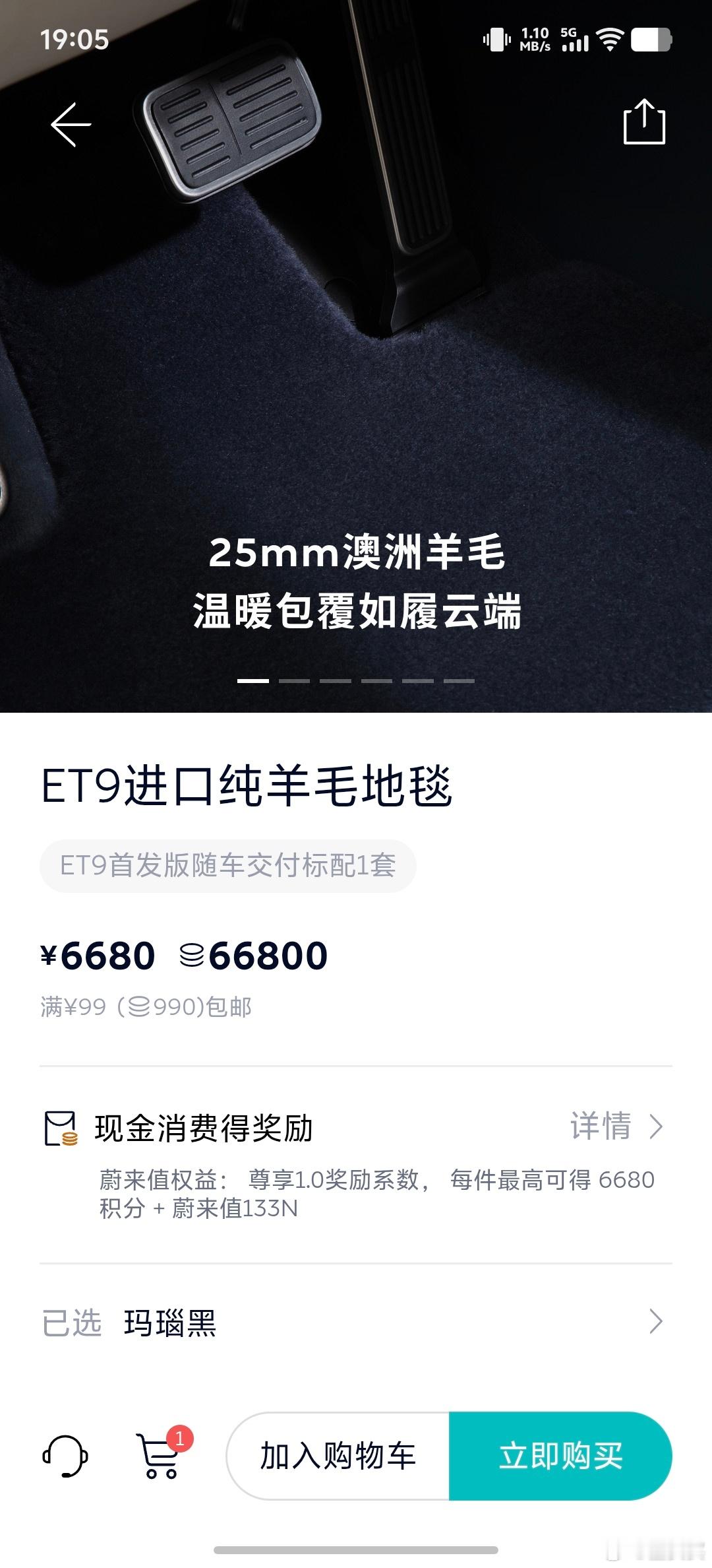 开车就更合适了,薄薄的底,跟踏板感觉更近,ET9毛茸茸的羊毛地毯,踩在上面,能感受到毛的长度,也很有趣。