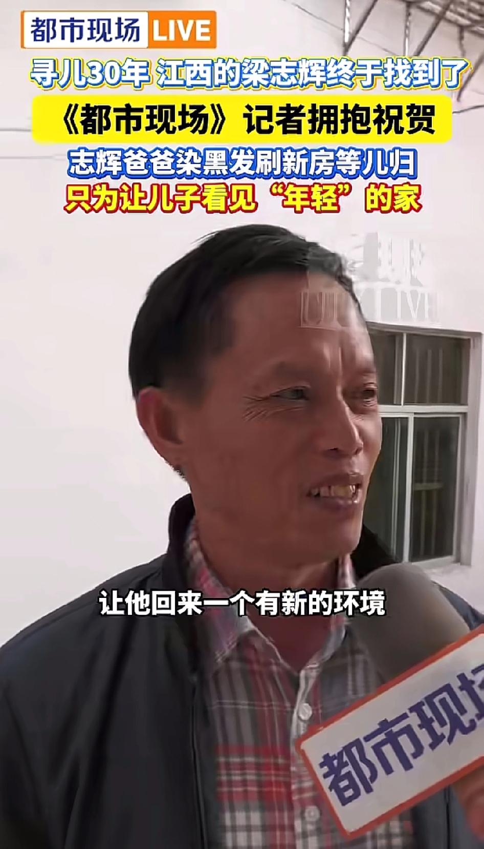 梁志辉爸爸寻子已经30余年,从青丝到白发,找遍全国各地,已经多次找到绝望痛哭,身体也已经不允许他到处奔波了,人生又能有多少个30年呢,太坎坷,太难了,终于团圆了,恭喜恭喜! 看到他特意染黑了头发,精气神一起来年轻了好多,真心替他开心。
