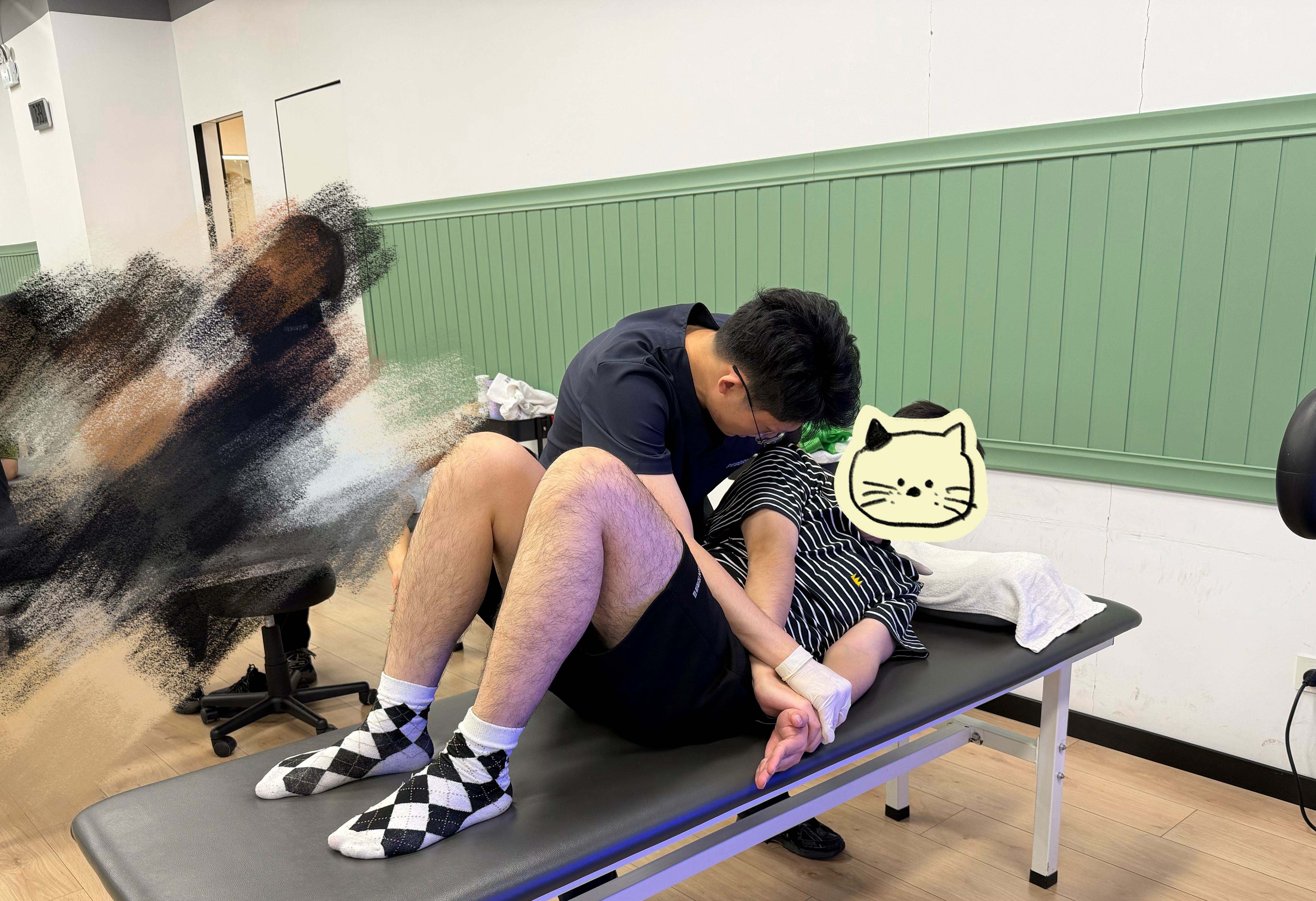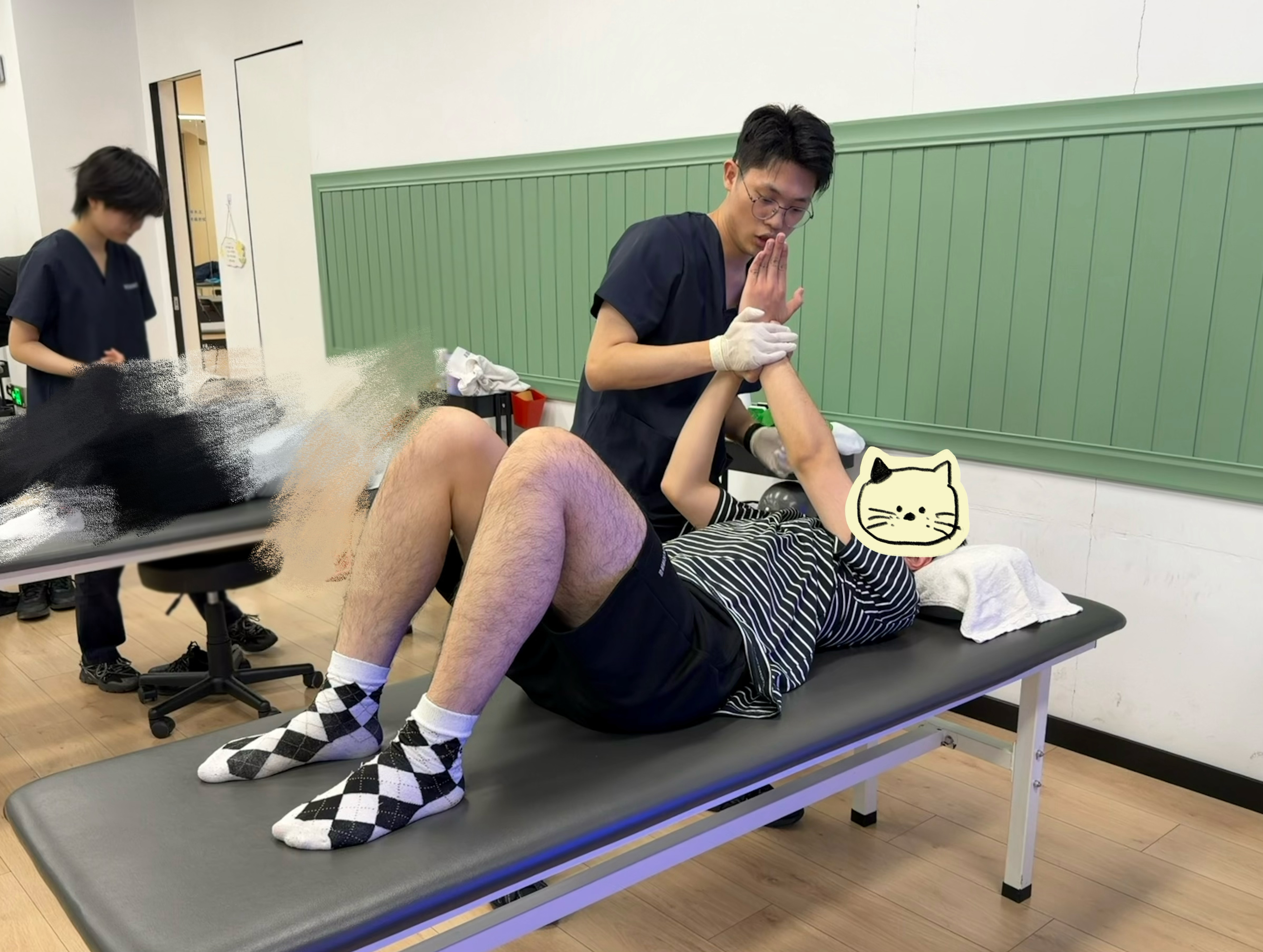 康复案例 在北京奥森门诊治疗的患者,平时爱打篮球,多年且多部位的损伤——右肩➕左脚跟腱➕左手腕,都有疼痛不适,而且右肩还有严重的弹响,从高中开始了,尤其是右肩,从高三一直持续到现在,一抬起来就响[跪了]