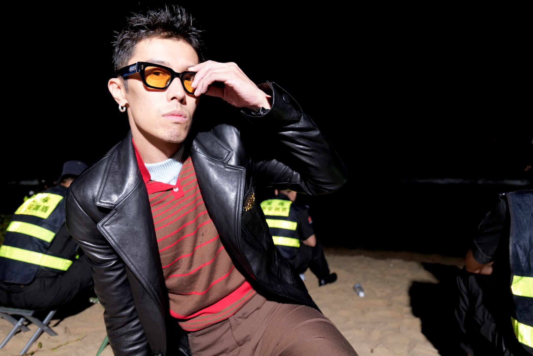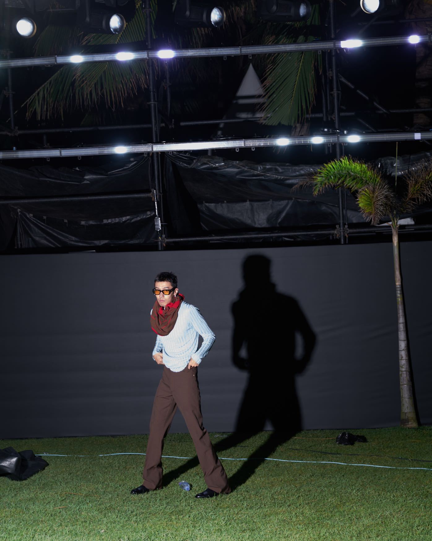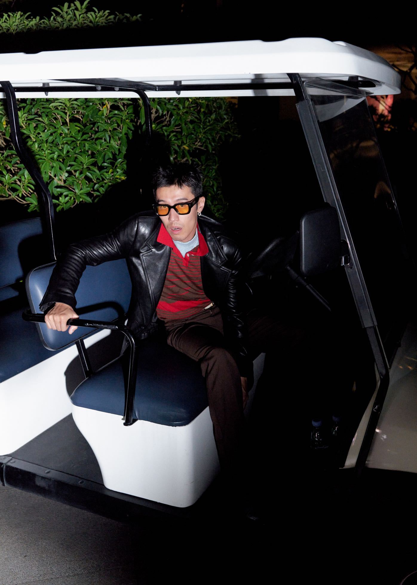 谁教周游出发图这么拍的 周游这出发图简直像电影海报!复古皮衣配墨镜的痞帅感,蹲在草地上的慵懒劲儿,连风吹乱的发丝都恰到好处,摄影师是不是偷偷报班了?