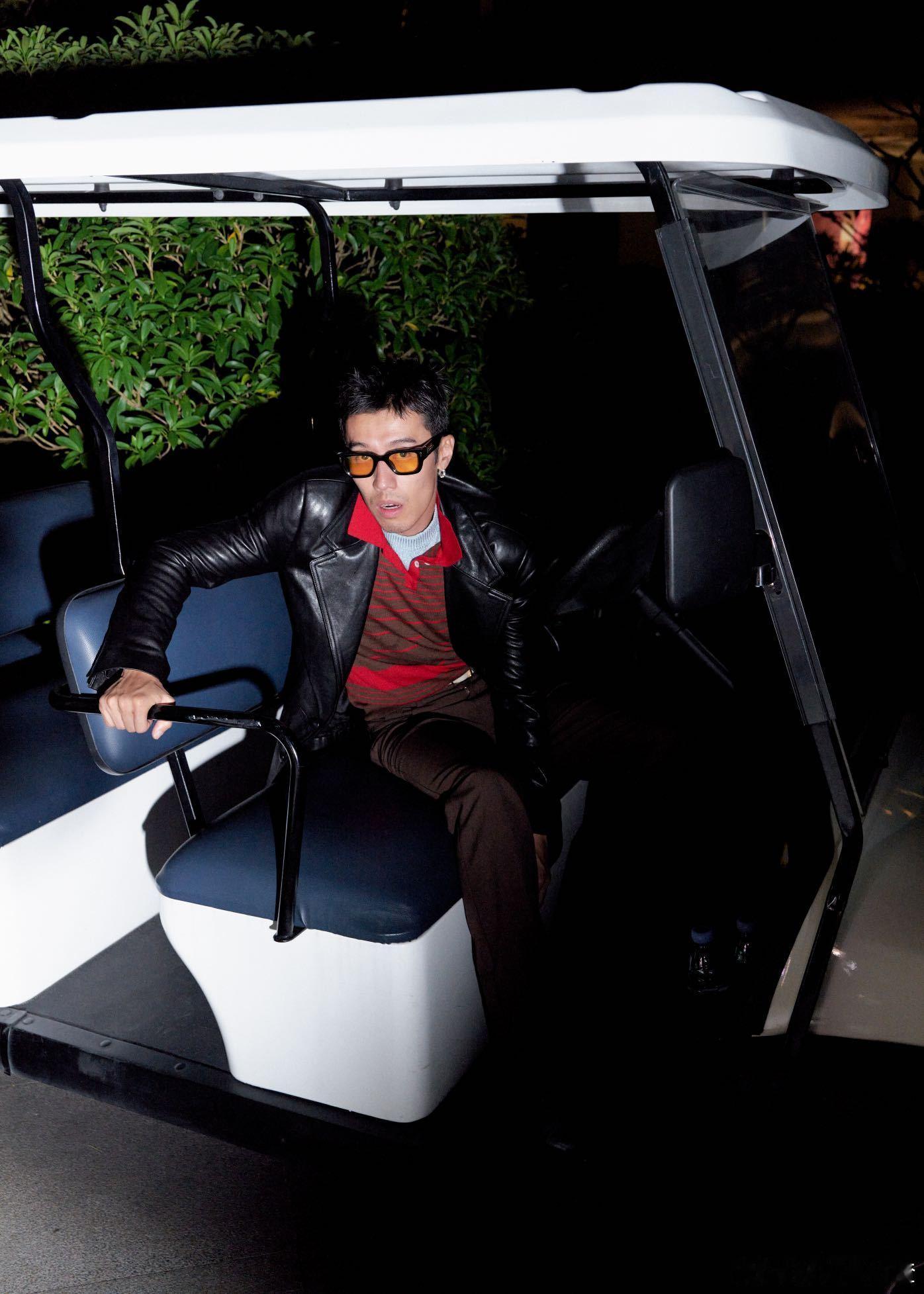 谁教周游出发图这么拍的 周游这出发图也太会抓瞬间了!皮衣墨镜的痞帅表情,草地光影的慵懒姿态,连风吹动的衣角都充满动感,这镜头感太强了!