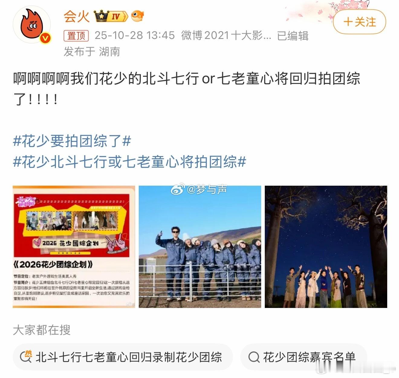 北斗七行七老童心回归录制花少团综芒果新一季综艺及晚会片单2025芒果秋季招商大会 “北斗七行”与“七老童心”两大花少顶流天团要回归拍团综的消息太炸了![爱你][心]