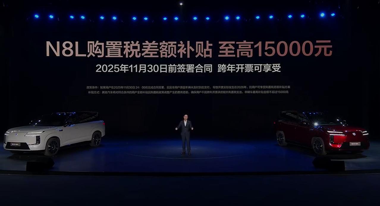 腾势N8L价格发布 尊荣型售价29.98万元 旗舰型售价32.98万元 越级价值终极满足!最高1万置换补贴,3年免利息。也推出了跨年购置税补贴,最高补1.5万元