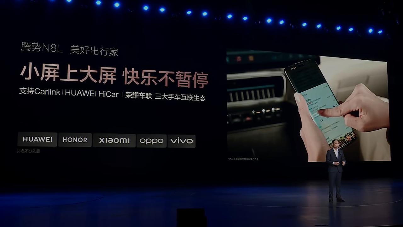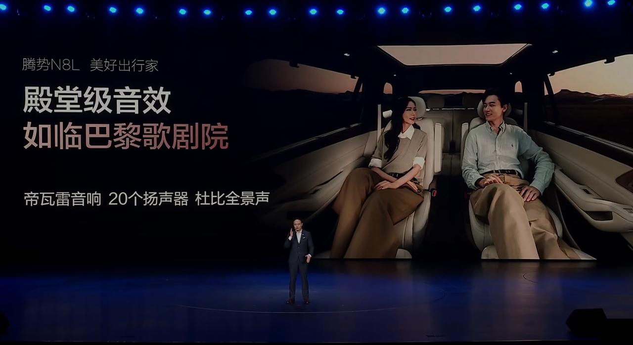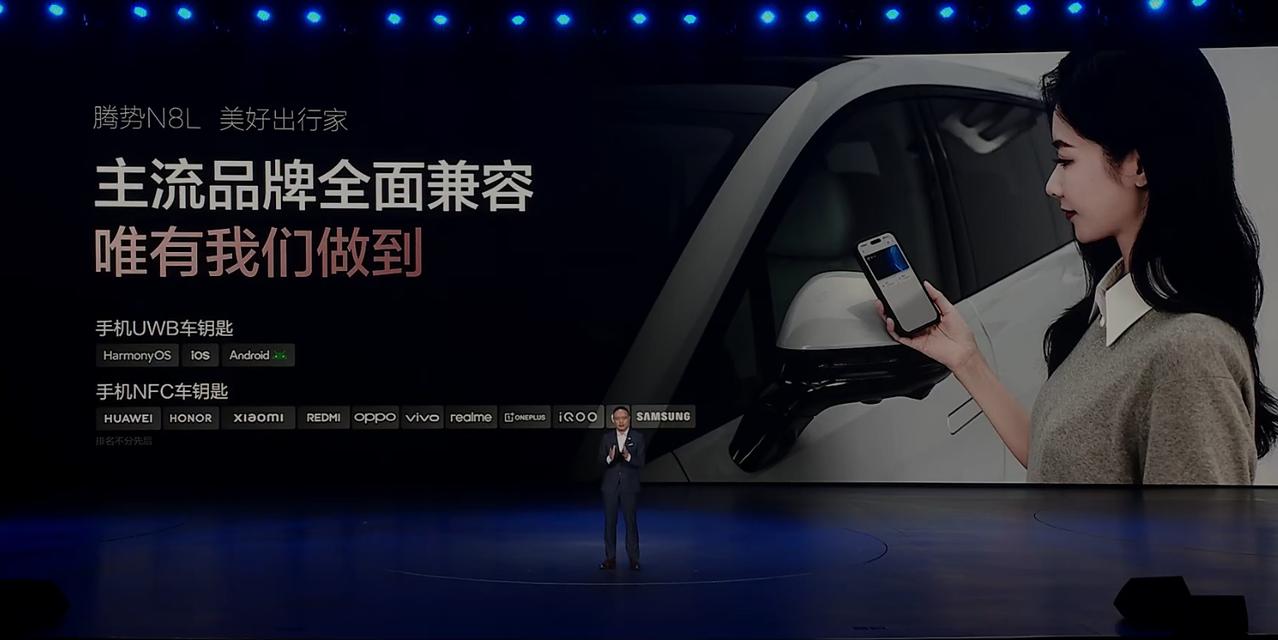 腾势N8L百公里加速3.9S,230km CLTC 纯电续航,采用易三方插混专用2.0T高效发动机+云辇-A+双腔空悬,还有智能路面预瞄2.0,30个智能化传感器,天神之眼-B辅助驾驶激光版,辅助驾驶水平号称行业一流,越级价值终极满足 通过多项安全测试,包括高速避让不甩尾测试成绩128km/h,高速避让不侧翻测试成绩210km/h,高速爆胎不失稳测试成绩180km/h,号称新能源安全之王 UWB钥匙,车钥匙兼容苹果iOS,华为鸿蒙和安卓;20个帝瓦雷音响,支持杜比全景声