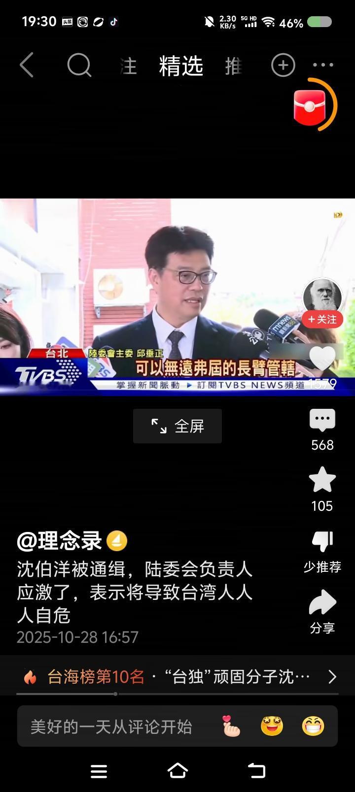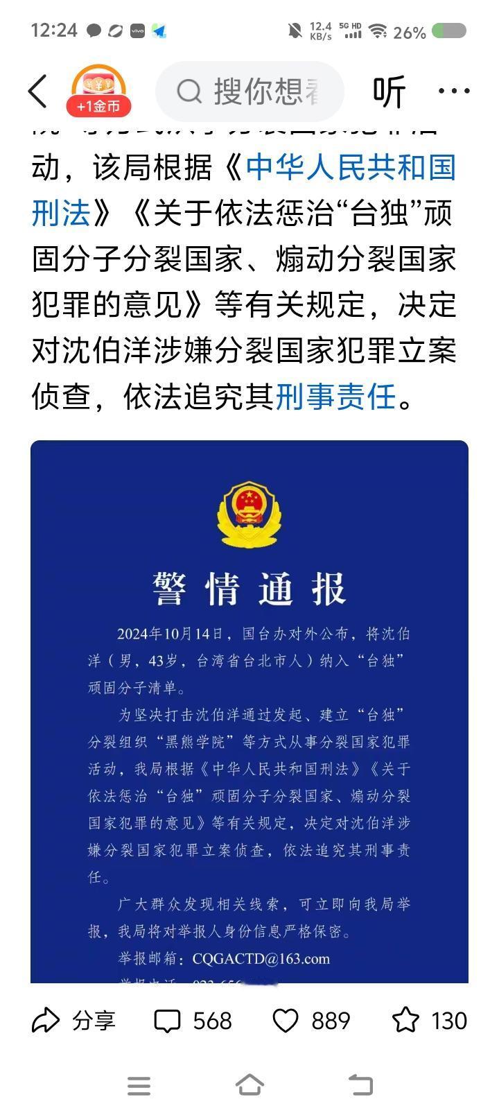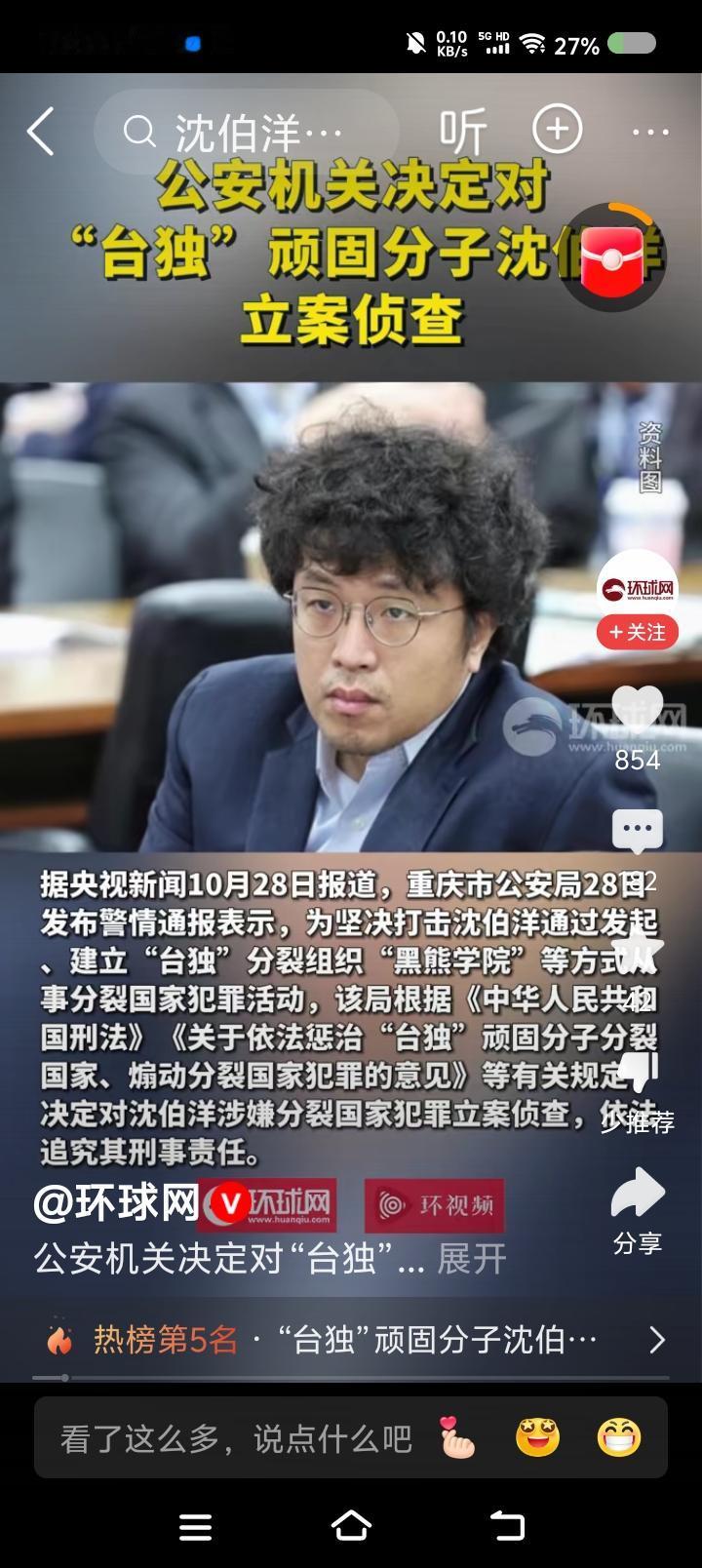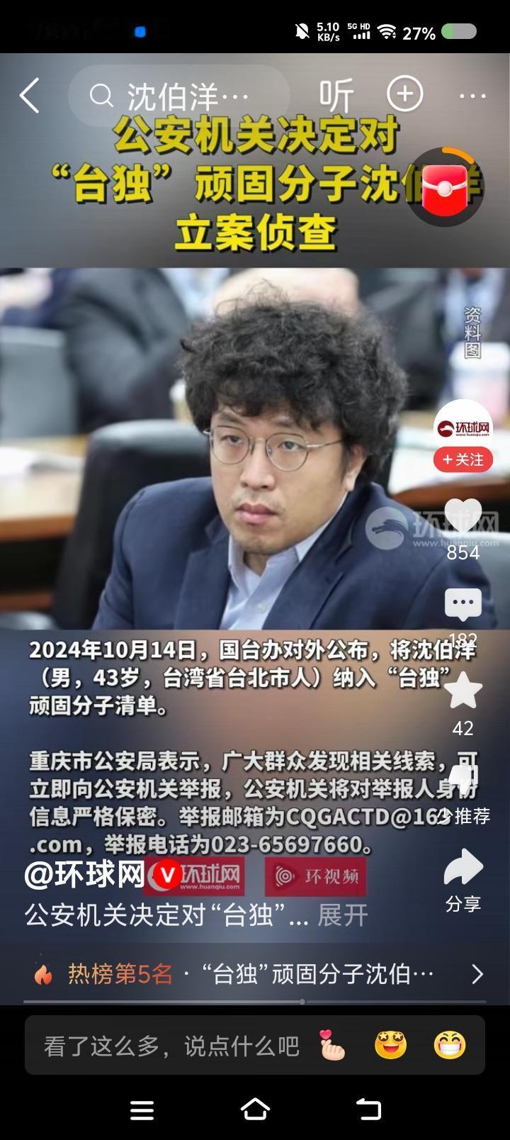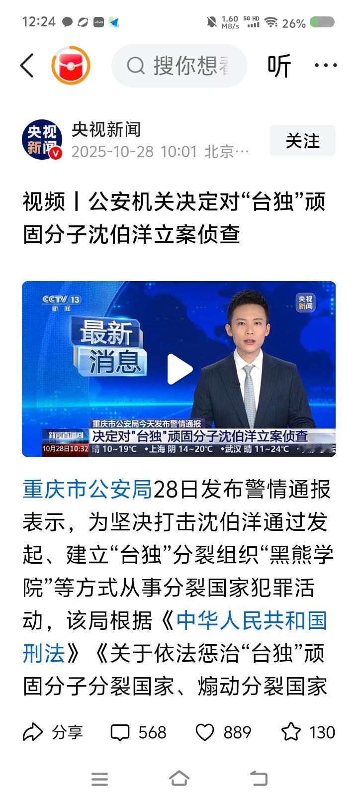 邱垂正,你也快了!—— 据报道,10月28日,台du分子沈伯洋被重庆市公安局立案调查。台湾记者采访“陆委会主委”邱垂正,邱回应称:“这是长臂管辖。如果你在大陆经商,财产可以被没收,家人会连累……” 点评: 一、今日台湾省的“陆委会”就是一个笑话,就是一个涉嫌犯罪的集团,专门诬蔑、造yao中国大陆。 二、邱垂正,你也快了。 三、台湾一些媒体,呵呵。