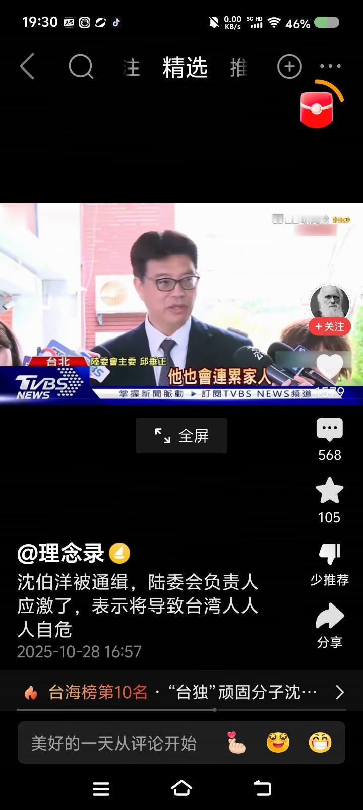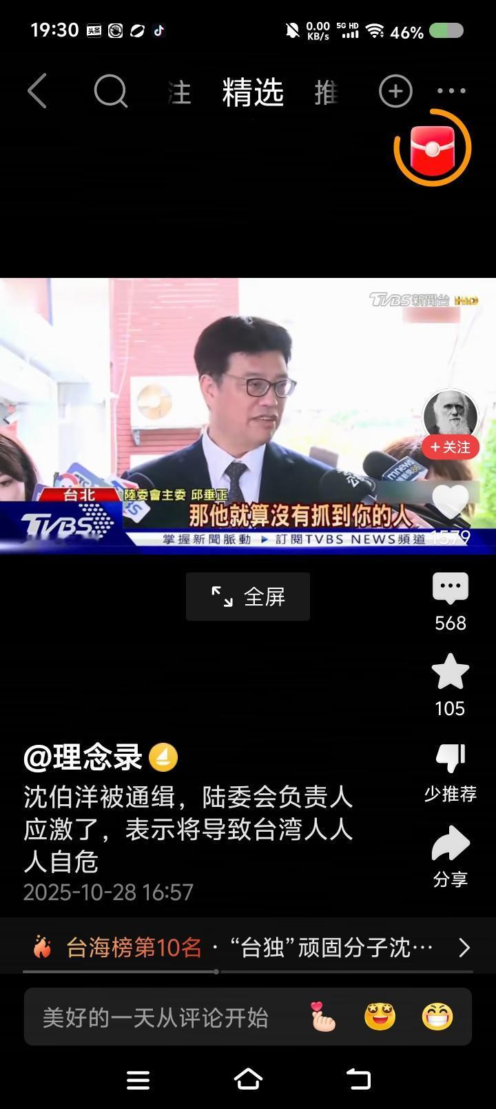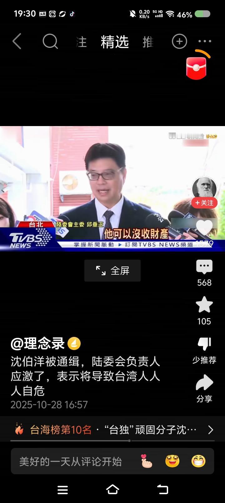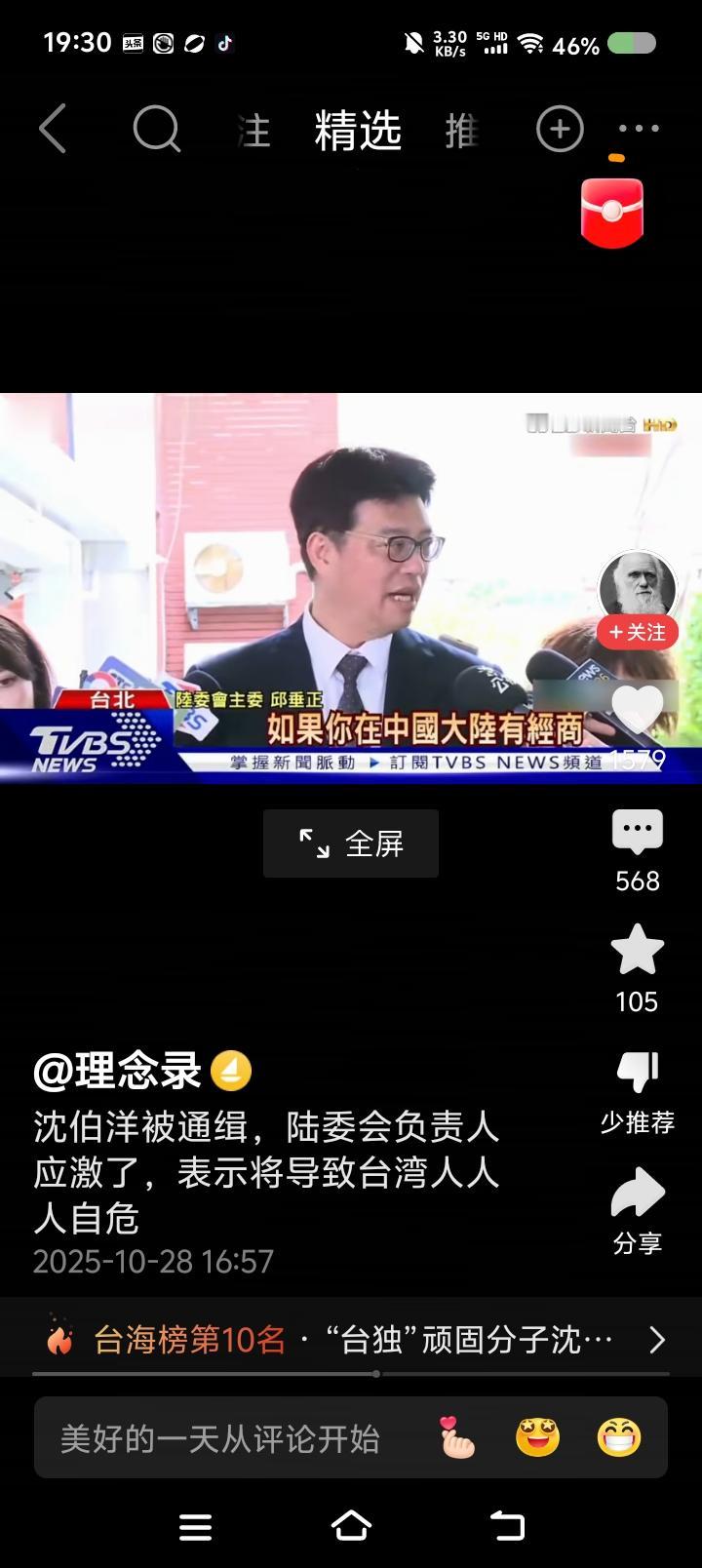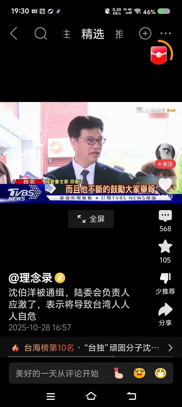 邱垂正,你也快了!—— 据报道,10月28日,台du分子沈伯洋被重庆市公安局立案调查。台湾记者采访“陆委会主委”邱垂正,邱回应称:“这是长臂管辖。如果你在大陆经商,财产可以被没收,家人会连累……” 点评: 一、今日台湾省的“陆委会”就是一个笑话,就是一个涉嫌犯罪的集团,专门诬蔑、造yao中国大陆。 二、邱垂正,你也快了。 三、台湾一些媒体,呵呵。